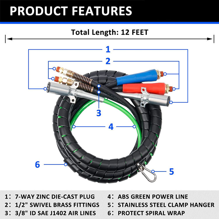Nom du produit:Tuyau d'air 3 en 1 pour semi-remorque