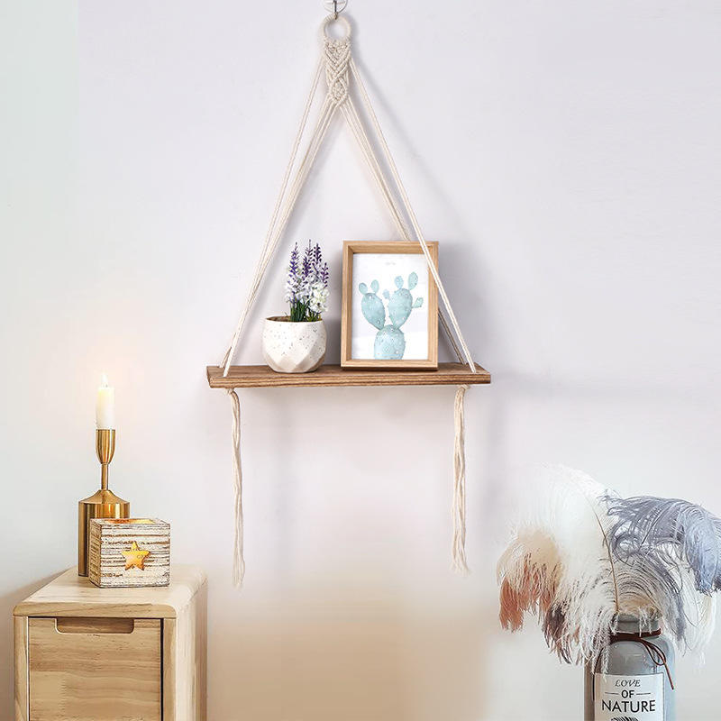 Tapisserie murale en corde de coton faite à la main de style bohème, étagère de rangement pour le salon, décoration de la maison