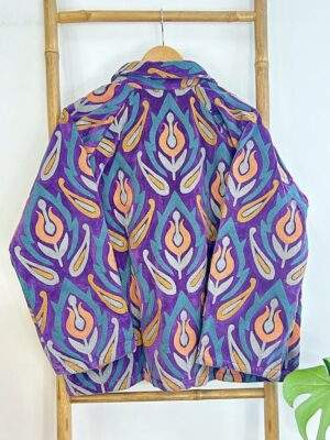 Winter Bohemian Artisan Embroidered Knitted Quilted Short Cotton Oversized Jacket Women Colorful Abstract Floral Print Vintage