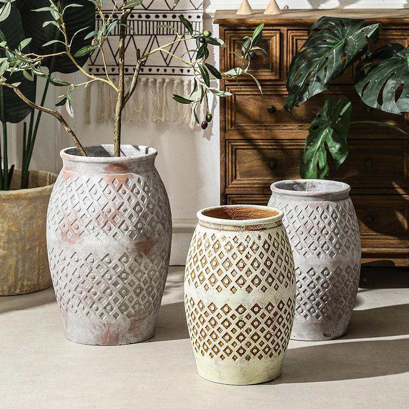 Pot de fleurs en ciment bohème, décoration simple pour la maison, ornement en poterie, vaisselle à fleurs, pot de grande taille pour plantes vertes du sol au plafond, fait à la main