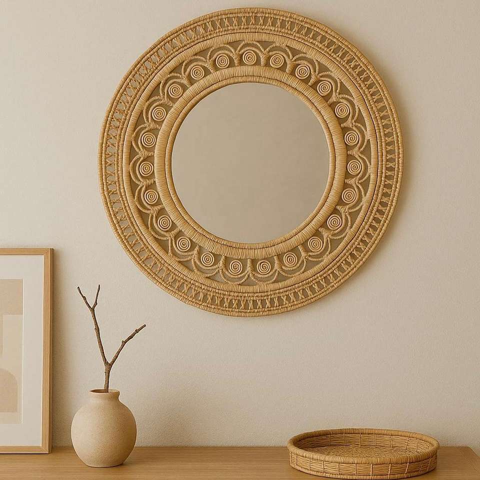 Bohemian Chic Bamboo Rattan Wall Mirror Retro Charm for Adding Character to Interior Decor