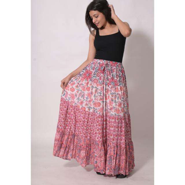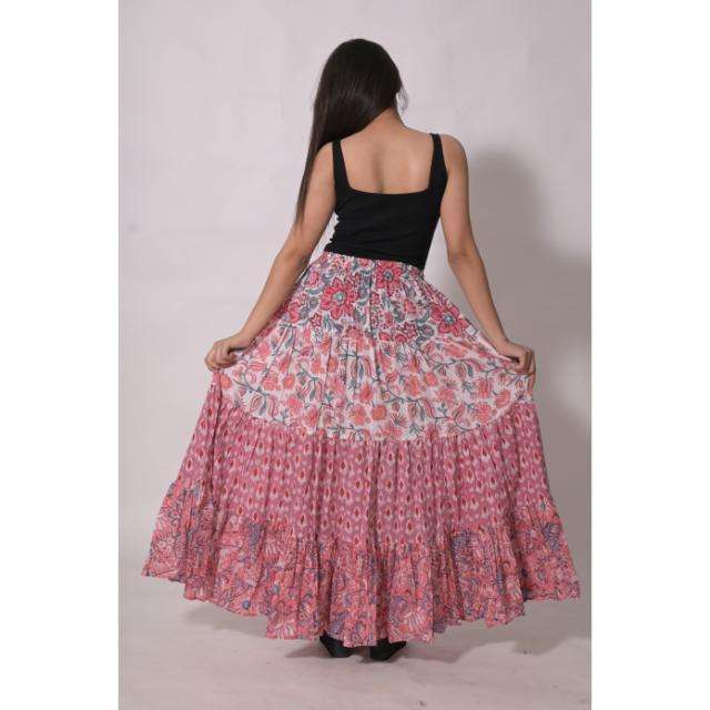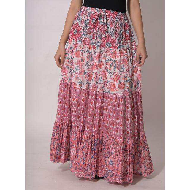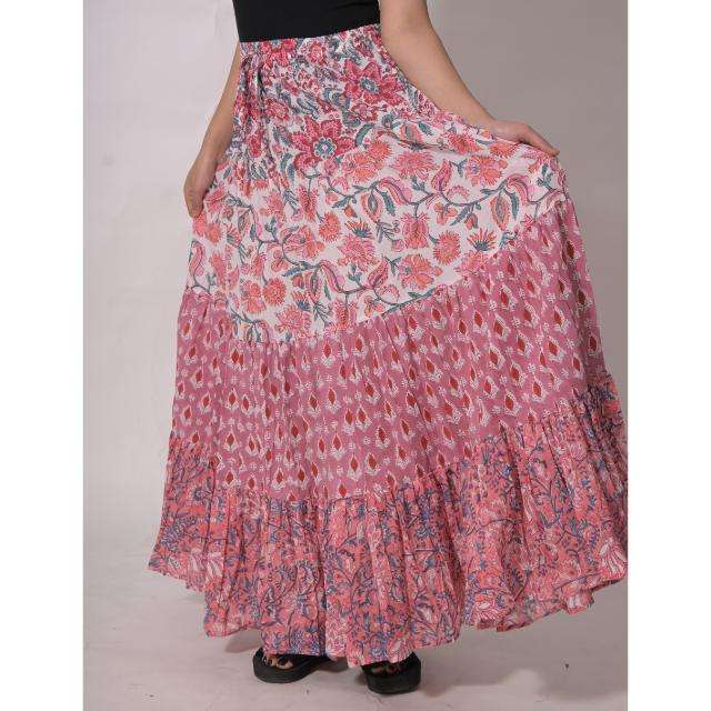 Jupe longue bohème en coton imprimé au bloc, style patchwork, décontractée, faite à la main, ethnique indienne, pour femme, respirante