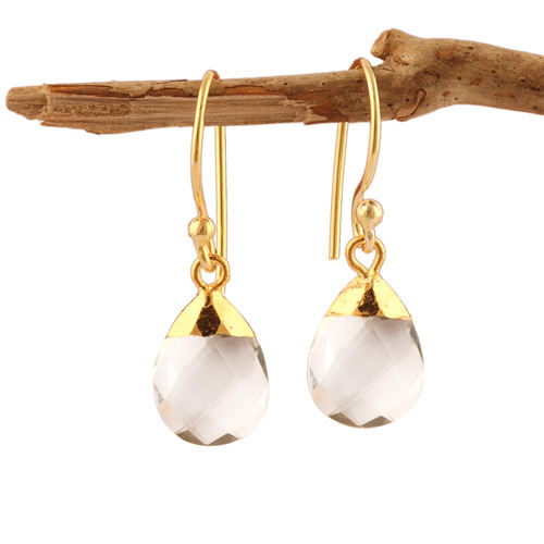 Bohemian Custom Jewelry clear Quartz Brass 24k Gold Plated Tear Drop Hook Earrings Classy Elementary Earrings Gift for Woman