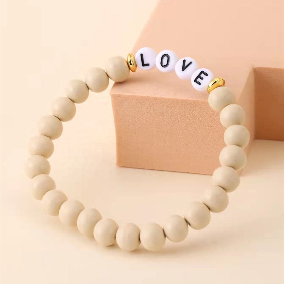 Bracelet de perles en bois de style bohème personnalisé MAMA LOVE enseigner la lettre nommé