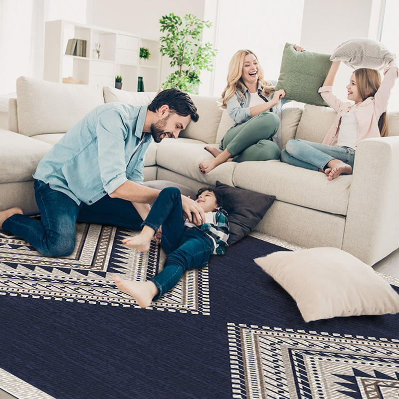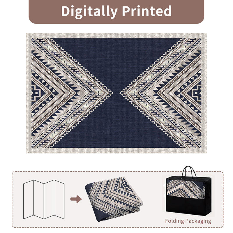 Tapis Bohème Pliable en Cachemire Ultrafin, Rectangulaire, Antidérapant, pour Chambre à Coucher, Moquette Mur-à-Mur, Motif Géométrique, Bleu Grammy