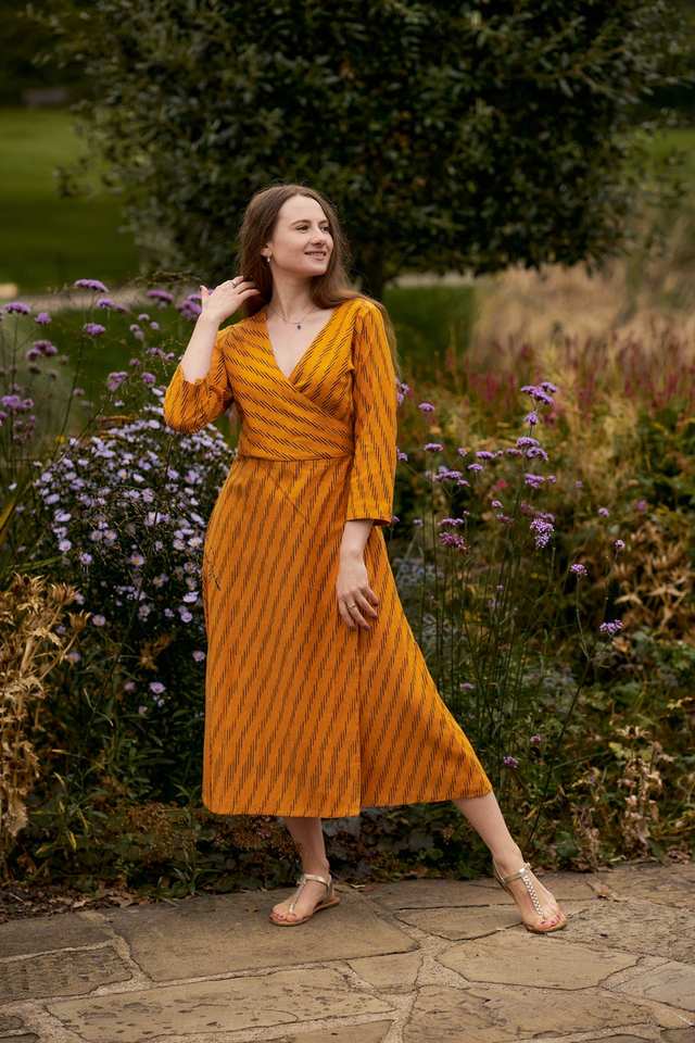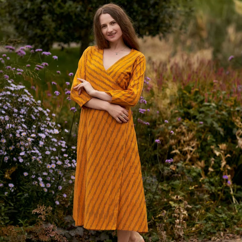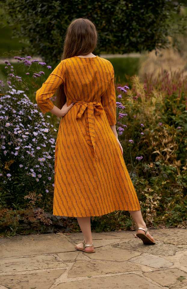 Bohemian Gauri Wrap Dress Pure Cotton Hand Loom Ikat Adjustable Waist