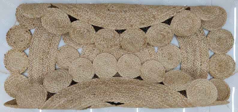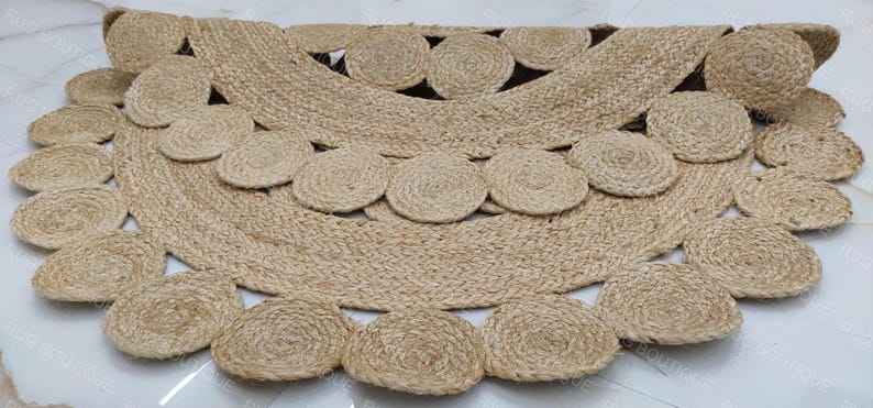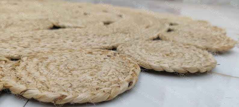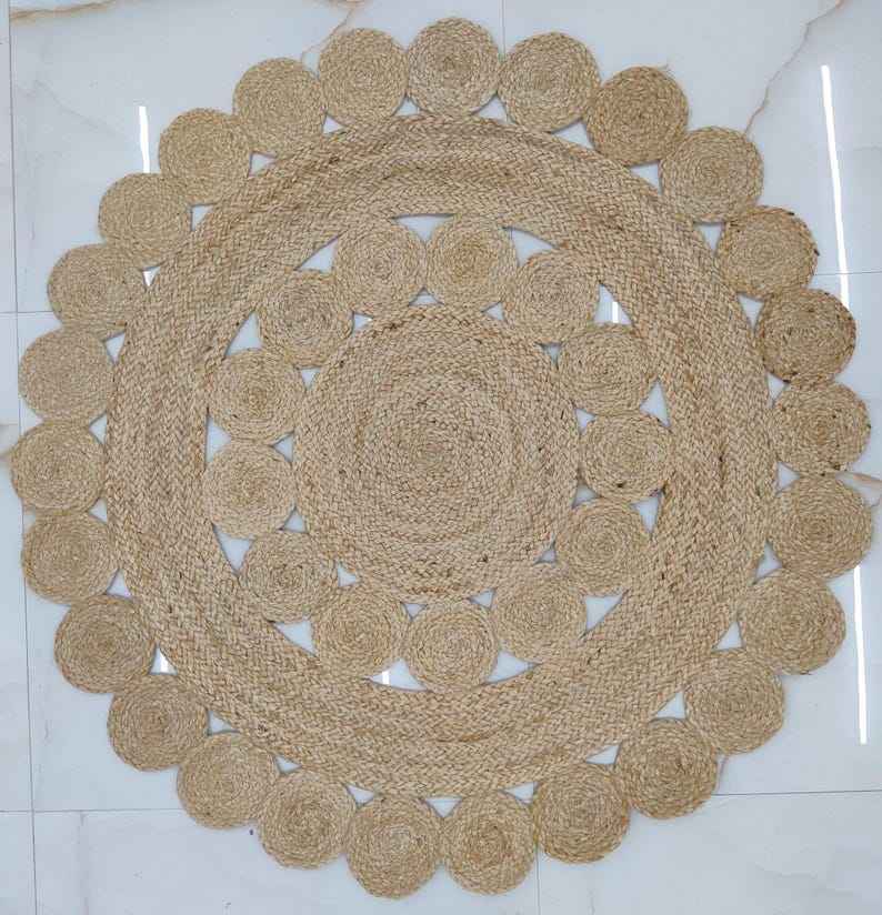 Tapis rond en jute tressé à la main de style bohème, tapis rond en fibres naturelles, décoration rustique chic pour la maison