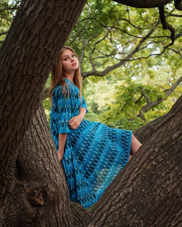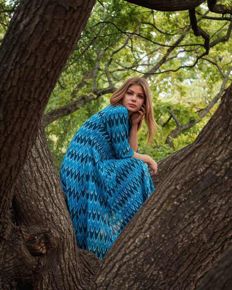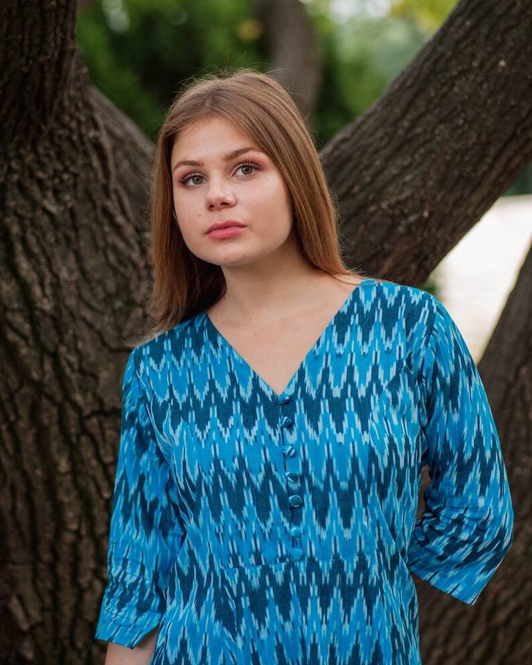 Bohemian Heidi Calf Length Dress Hand Loom Ikat Pure Cotton Handmade Casual Occasional Wear