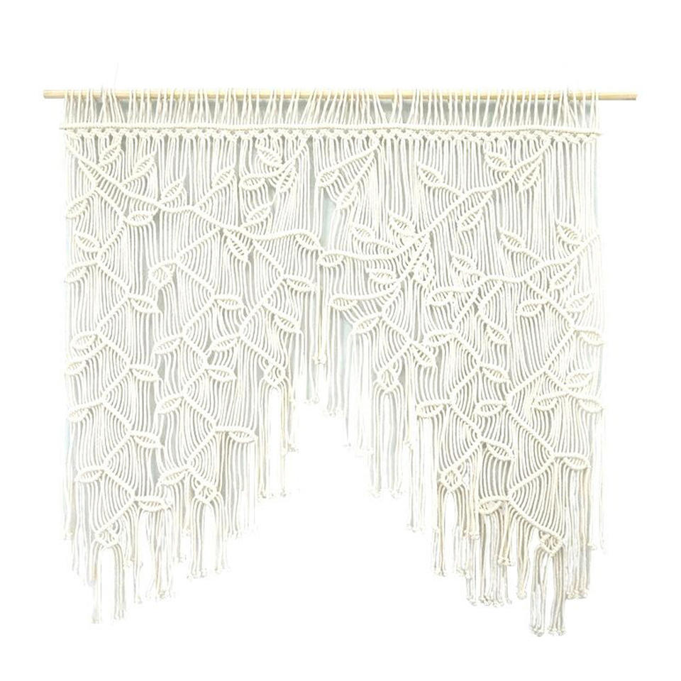 Rideau en macramé à motif de feuilles bohèmes - Tapisserie de porte semi-transparente en coton tissé à la main pour la décoration intérieure bohème et les accents muraux