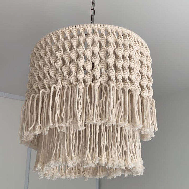 Suspension bohème en macramé au plafond Grand abat-jour suspendu en coton Lustre design fait main pour salon Hall