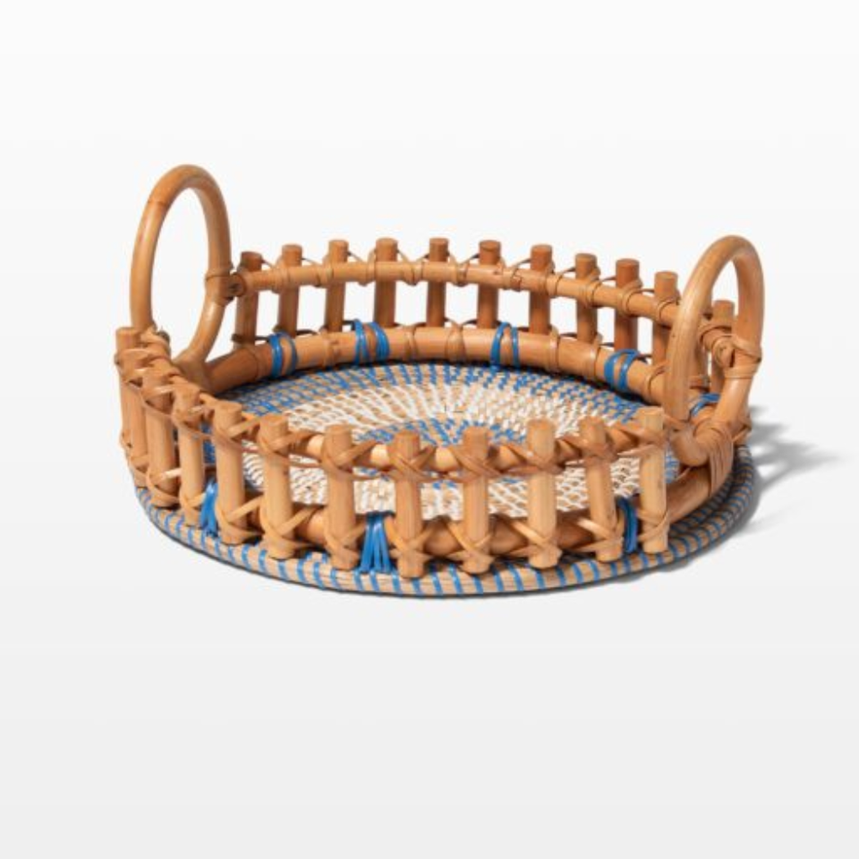 Plateau de service rond décoratif en rotin naturel bohème avec fond en jonc de mer, plateau personnalisé pour cuisine, salle de bain, en provenance du Vietnam