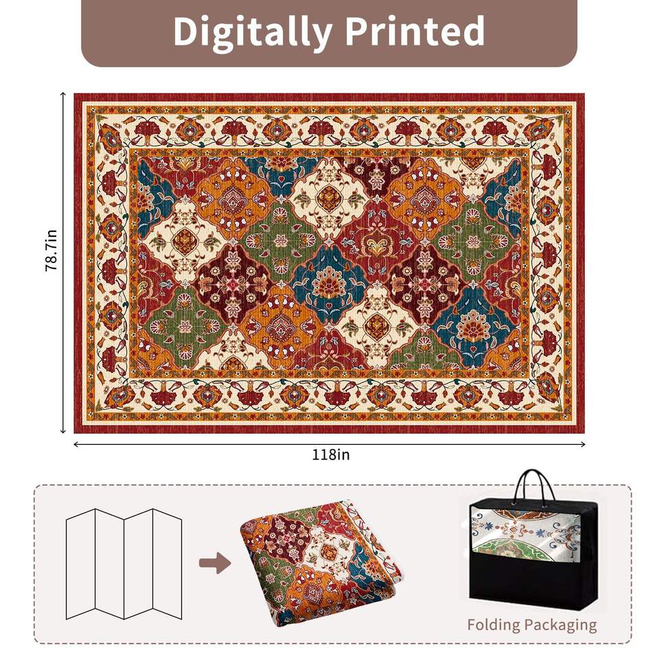 Tapis bohème 118x78,7 pouces imprimé numériquement, pliable, pour salon et chambre à coucher