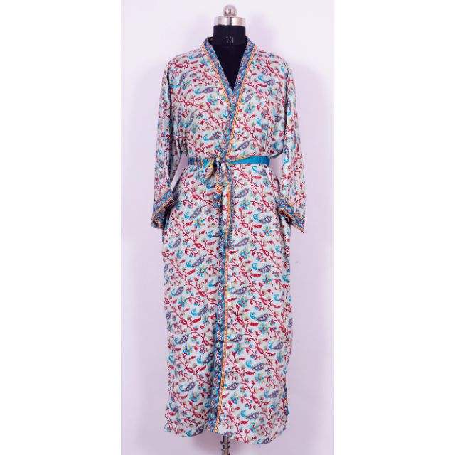 Kimono en soie bohème, style indien, robe de chambre longue à manches longues respirante pour femmes, pour la plage, les fêtes, couvre-vêtement, vêtements de nuit