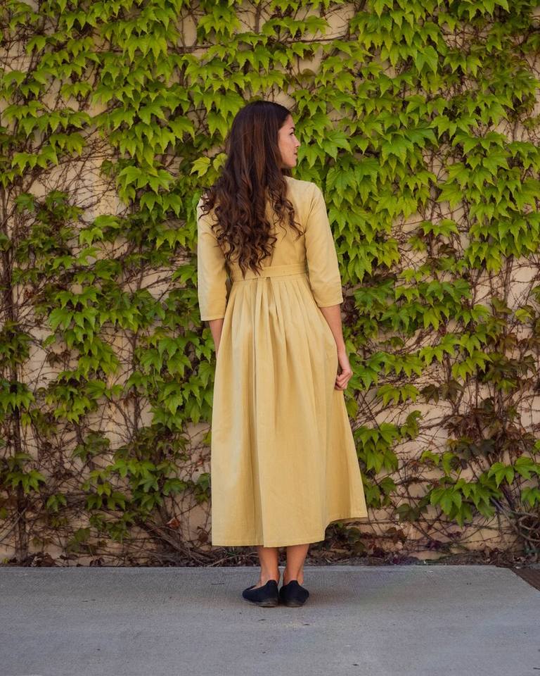 Robe boutonnée bohème Sofia en pur coton, décontractée d'été, occasionnelle, vert poire, vêtements éthiques