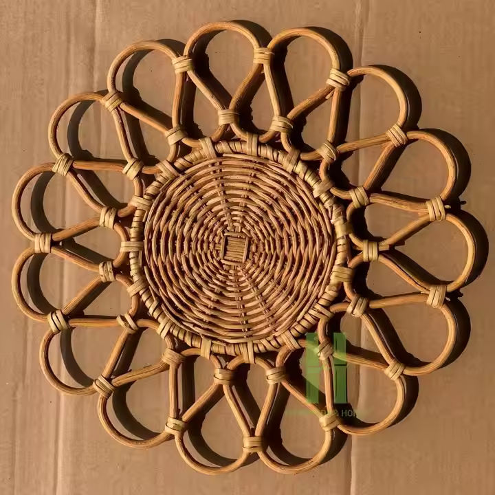 Set de table carré en rotin bohème, assiettes de présentation en rotin bohème pour la décoration de table, provenant d'un grossiste vietnamien