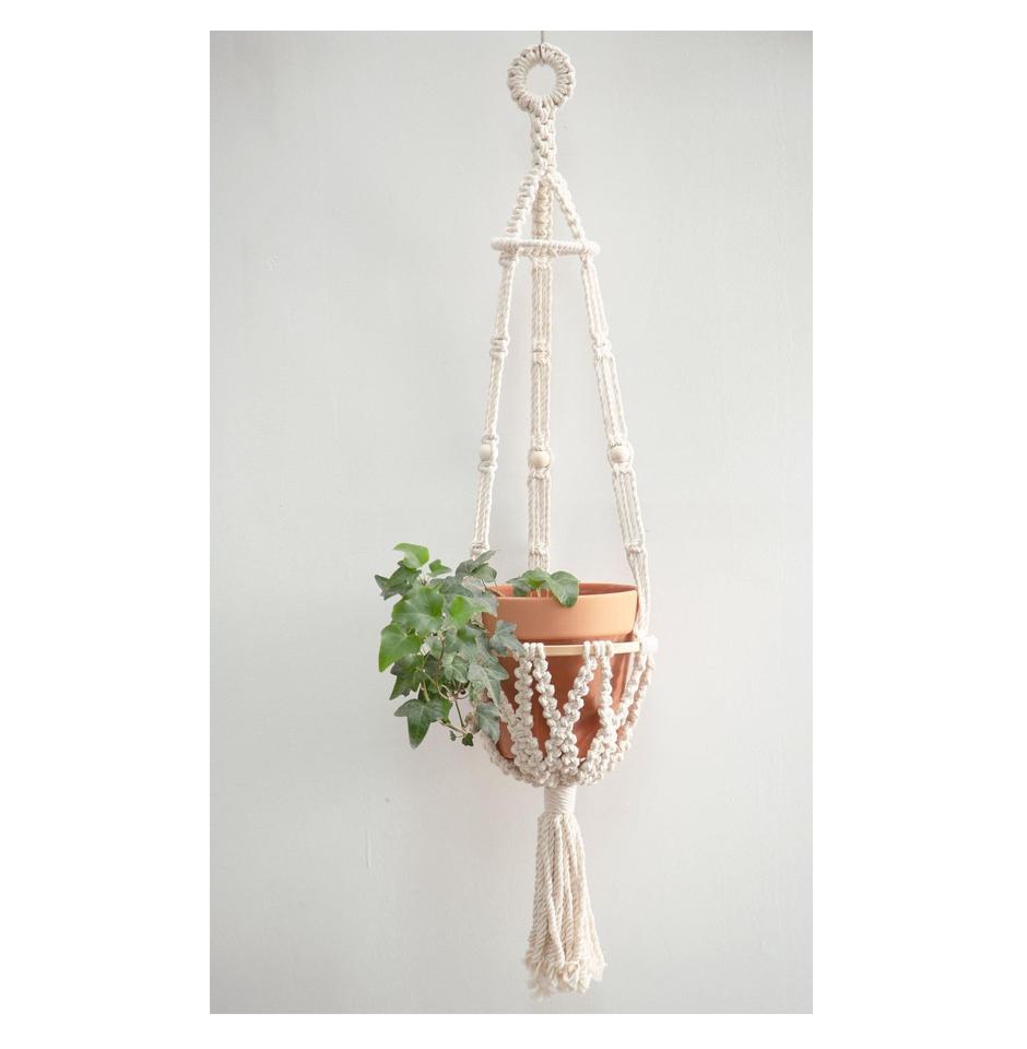 Jardinière en corde de style bohème pour la décoration du salon, créant une ambiance de maison décontractée et terreuse