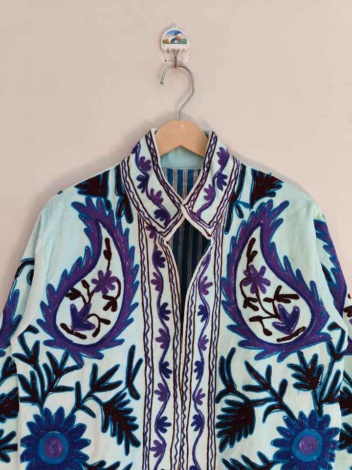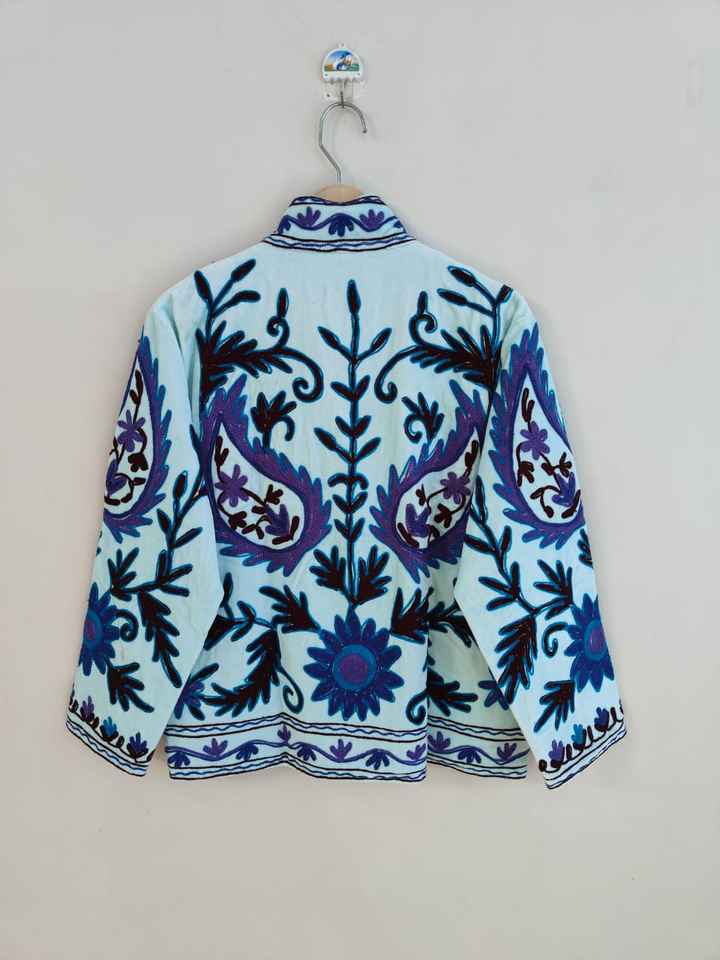 Veste en velours bohème Suzani, brodée à la main, motif floral, manteau vintage tribal bohème, vêtement d'extérieur artistique, broderie ouzbek