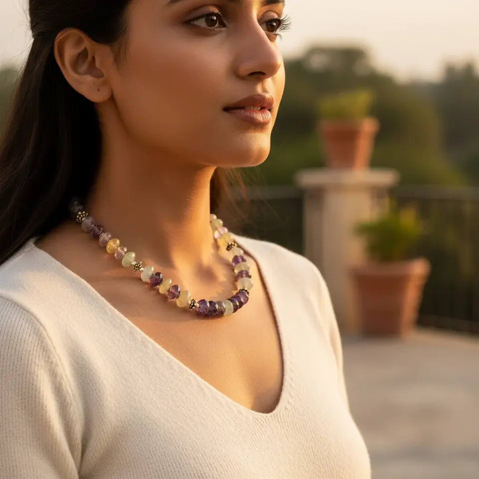 Collier bohème vintage en pierres précieuses, perles violettes, vertes, turquoise, grenat, jade avec plaqué or, bijoux élégants, cadeau