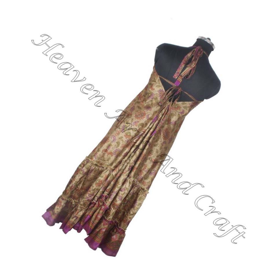 Bohemian Vintage Silk Women Wear Indian Sari Silk Designer Dress Ladies Elegant Dinner Gown Sleeveless Evening Gowns