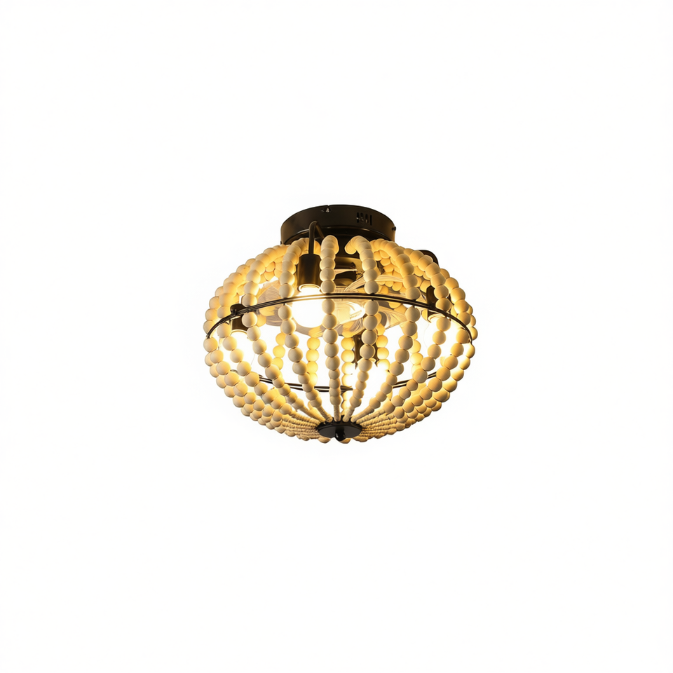 Ventilateur de plafond LED bohème à perles en bois, 18 pouces, montage encastré, 6 vitesses, moteur DC silencieux et réversible, idéal pour les fermes