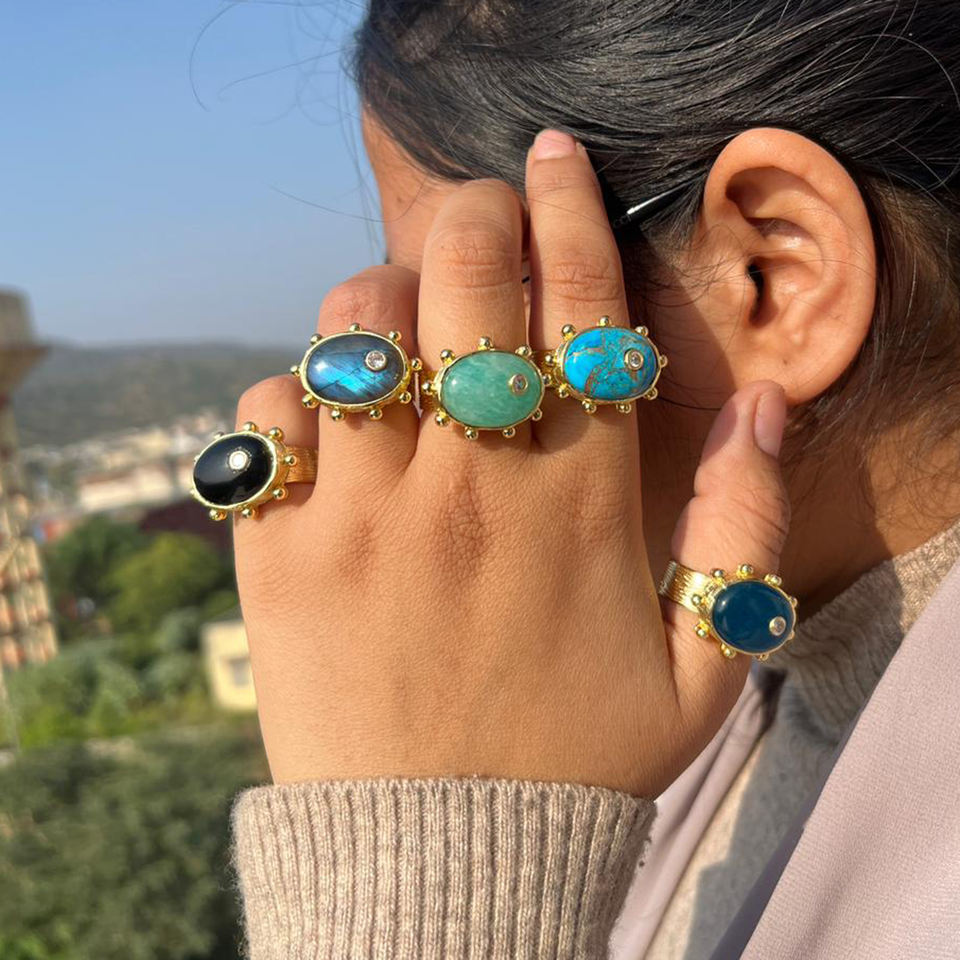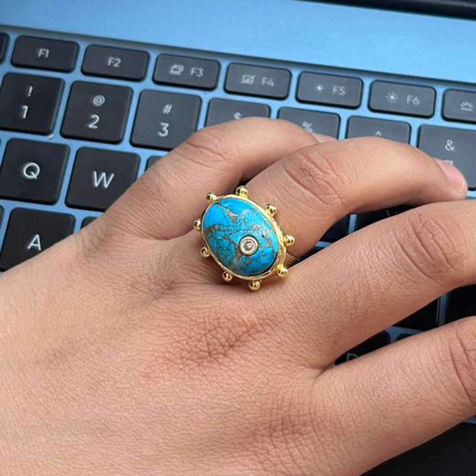 Stone Name:Mohave Blue Copper Turquoise, CZ