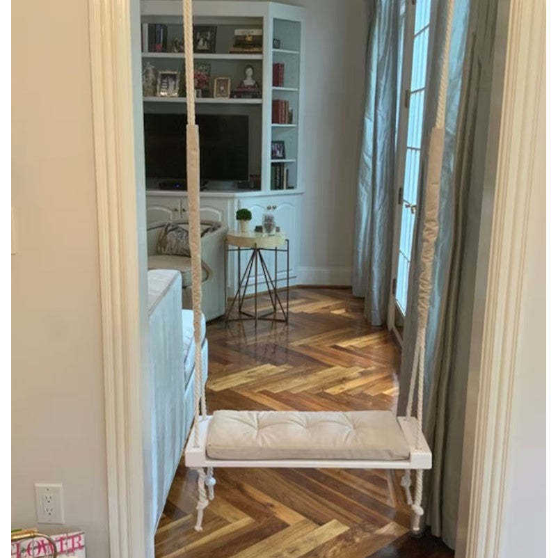 Balançoire d'arbre bohème pour adulte, artisanale, avec coussin, en bois, à suspendre, design bohème