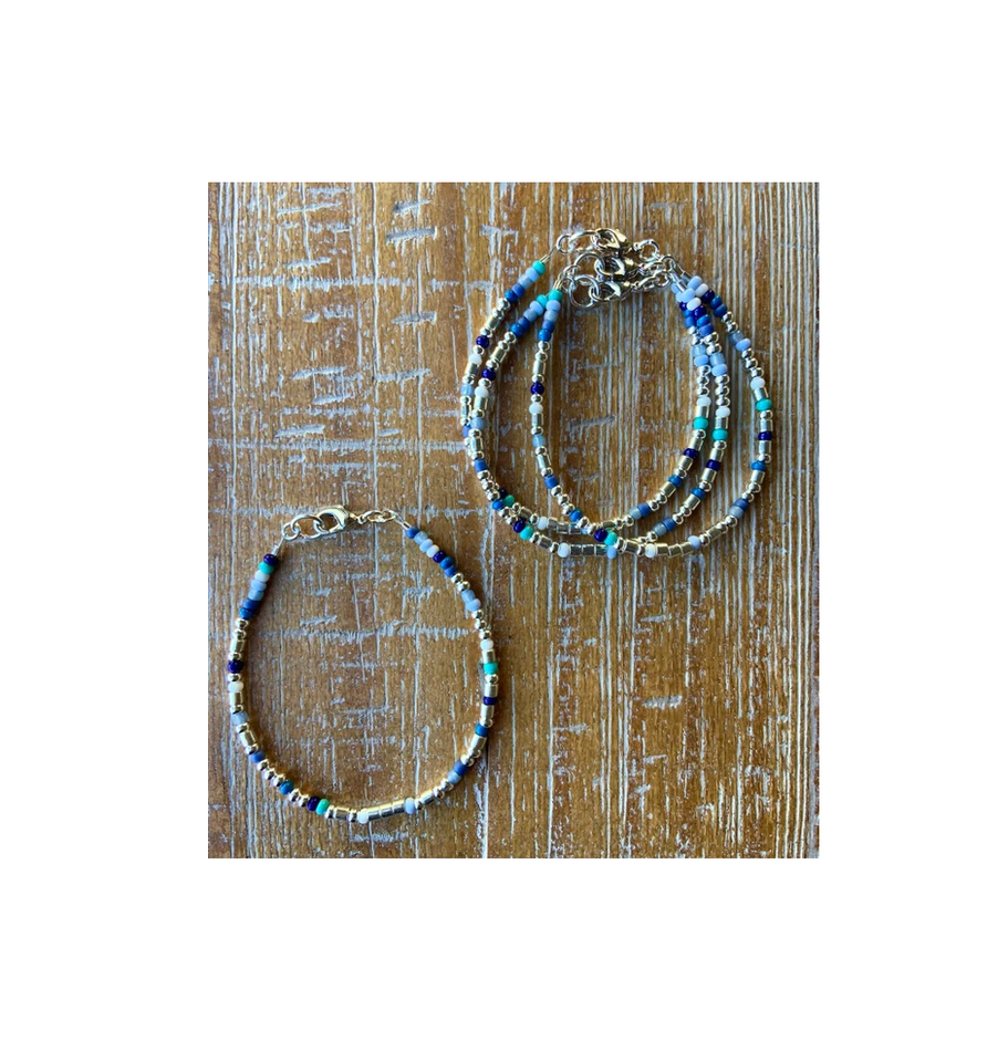 Boho Bangle Bracelets pour Femme Multi Layered Boho Wrap Bracelet Bijoux couleur bleue