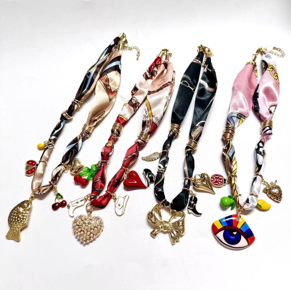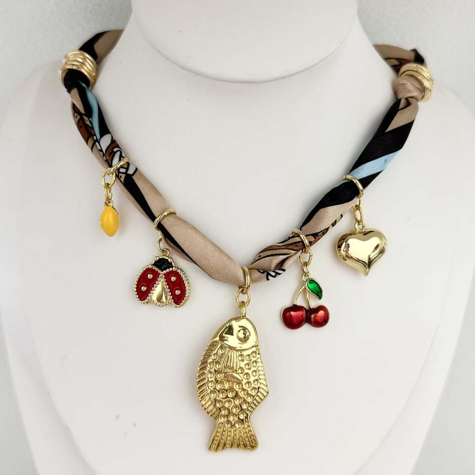 Bijoux de mariage bohème pour la plage, breloques en forme de cœur de poisson, cerise, mauvais œil, bottes, fraise, citron, ruban de soie, collier, accessoires colorés