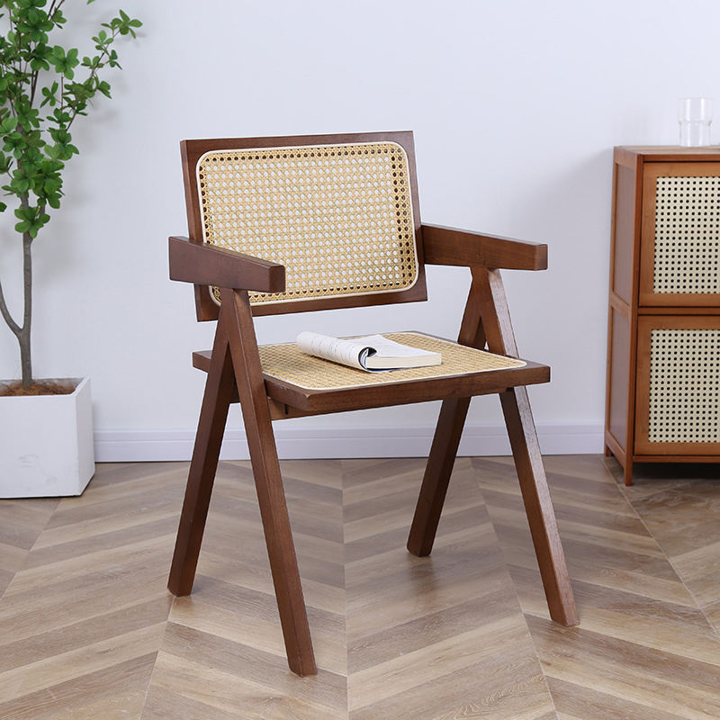 Boho Cane Dining Chairs Set of 2, Max Load 330 Lbs Wooden Dining Chairs, Accent Armchair for Living Room, Dining Room, Natural