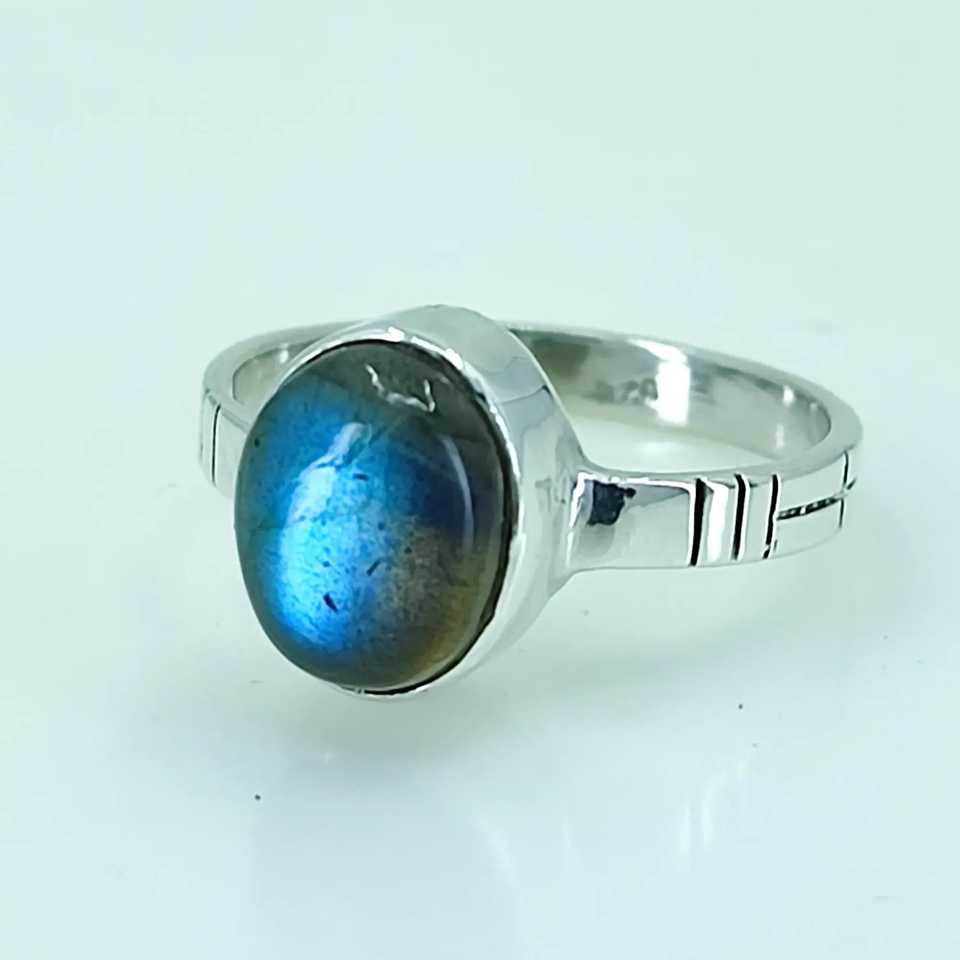 Bague ovale en labradorite style bohème chic, argent sterling 925, faite à la main, cadeau idéal pour son anniversaire, bijou géométrique pierre de naissance de novembre
