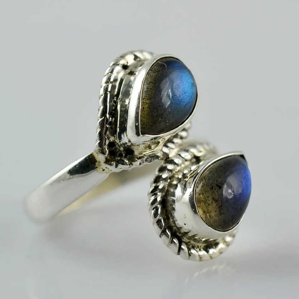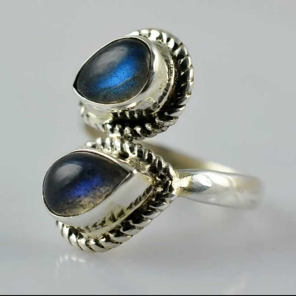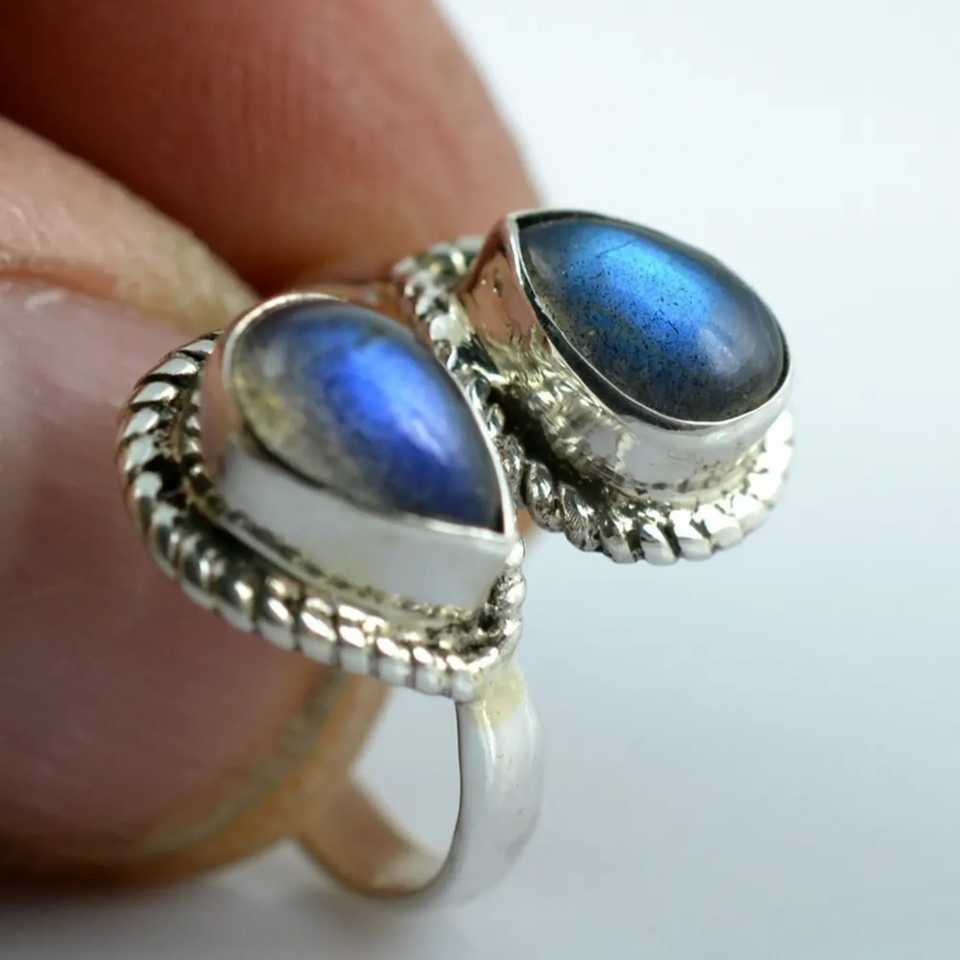 Bague artisanale en argent sterling 925 avec labradorite en forme de poire, style bohème chic, pierre de naissance de novembre, cadeau idéal pour son anniversaire