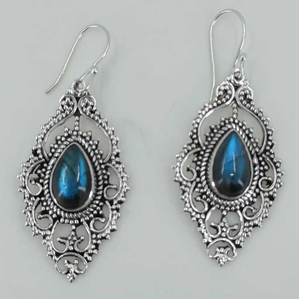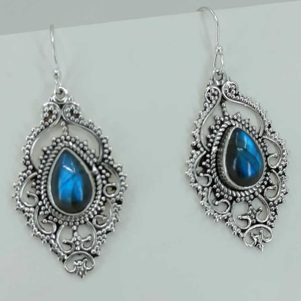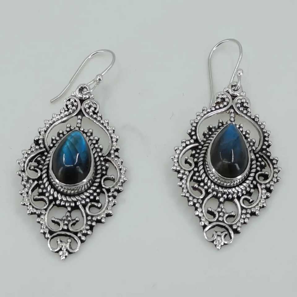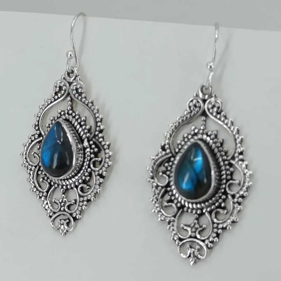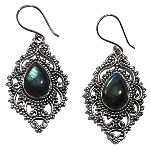 Boucles d'oreilles bohèmes chic en argent sterling 925 avec labradorite en forme de poire, faites à la main - Cadeau pierre de naissance de janvier pour elle