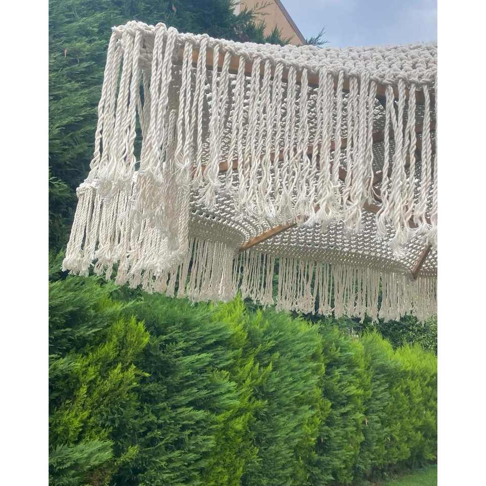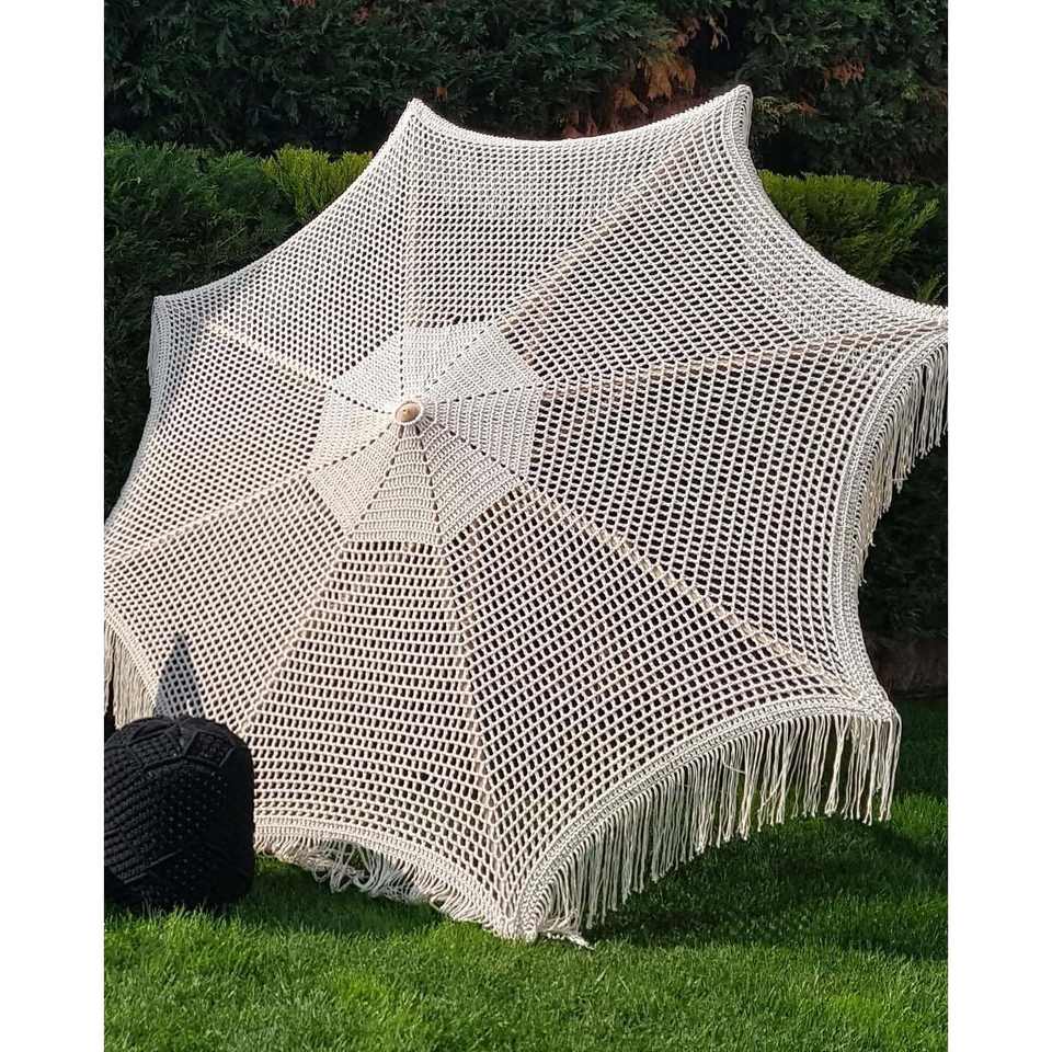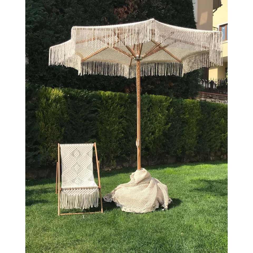 Parasol de plage en macramé style bohème chic avec bordure en bois, auvent au crochet, protection solaire extérieure pour cour et salle de sport