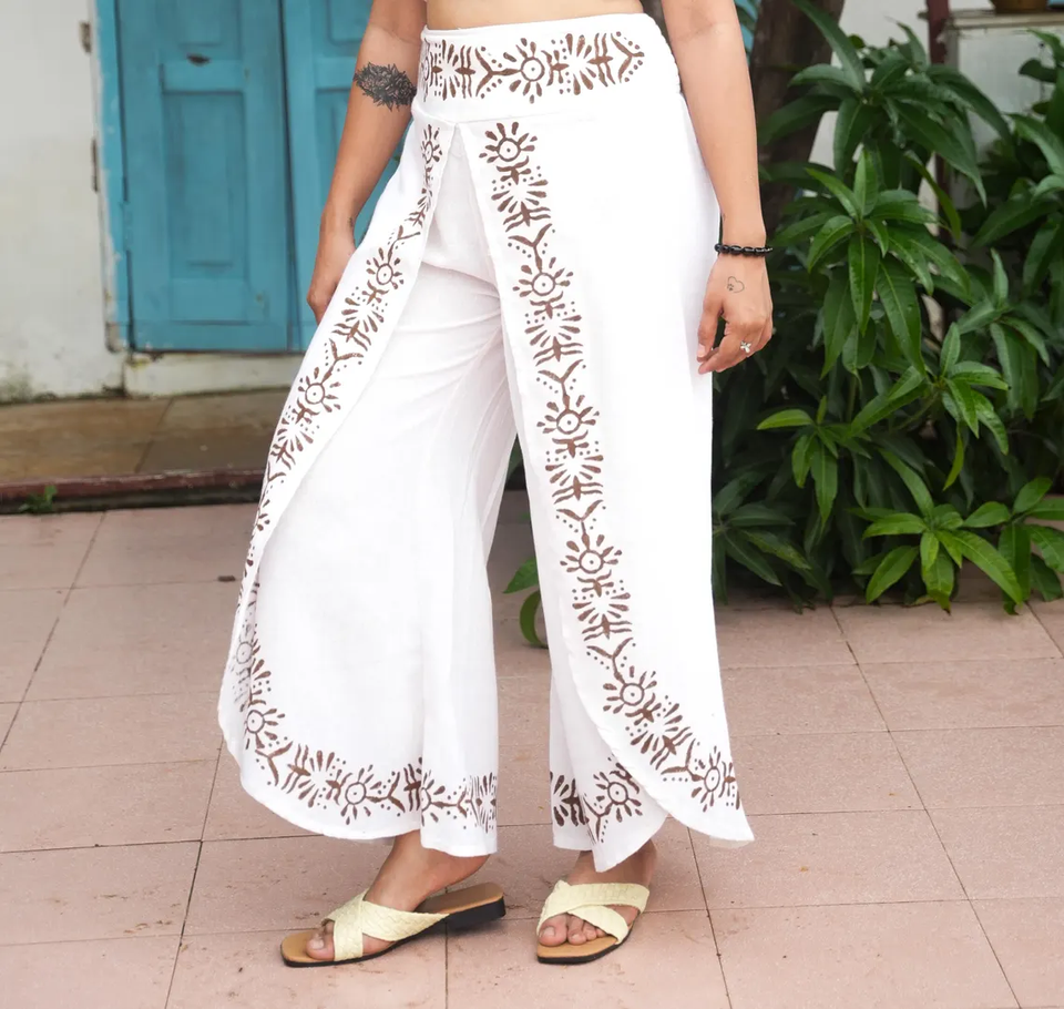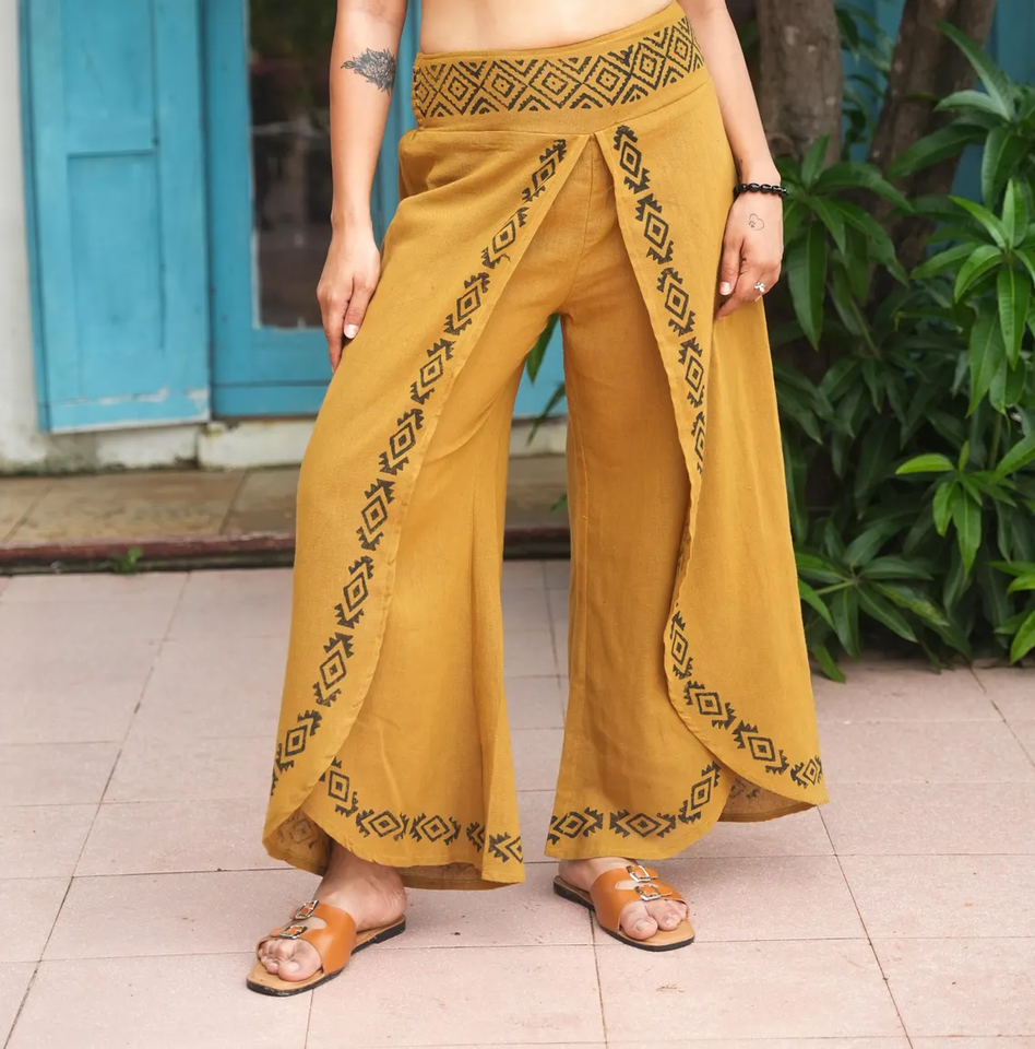 Boho Chic Organic Cotton Palazzo Pants Wrap-Front Harem Style Elastic Waist Closure 100% Cotton Casual Style