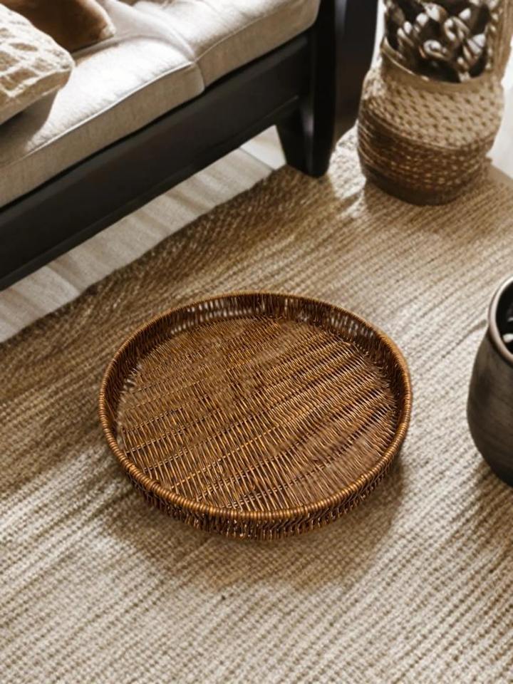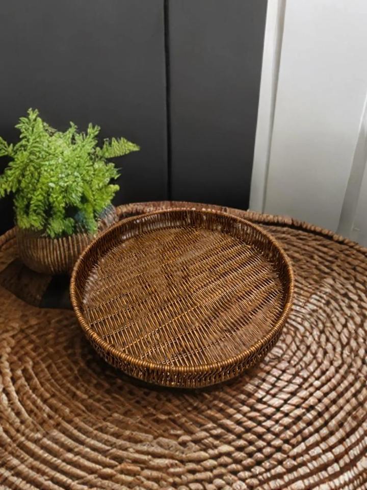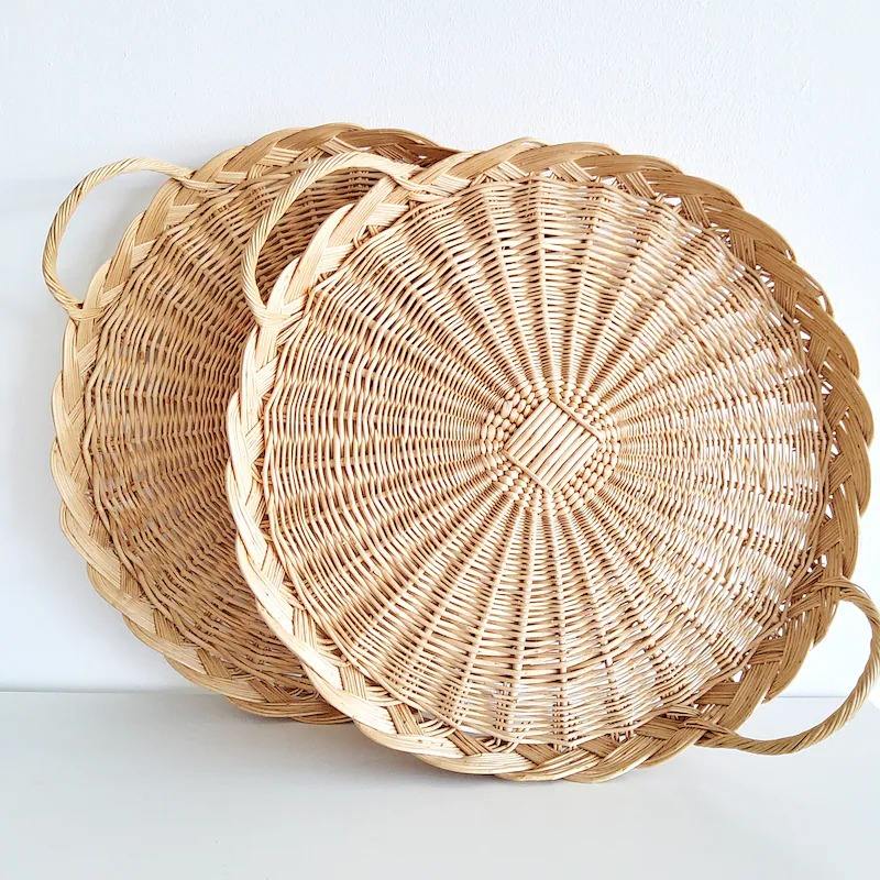 Plateau en rotin et coquillages de style bohème côtier, travail artisanal, cadeau de Noël pour la salle à manger, style et accent pour la maison