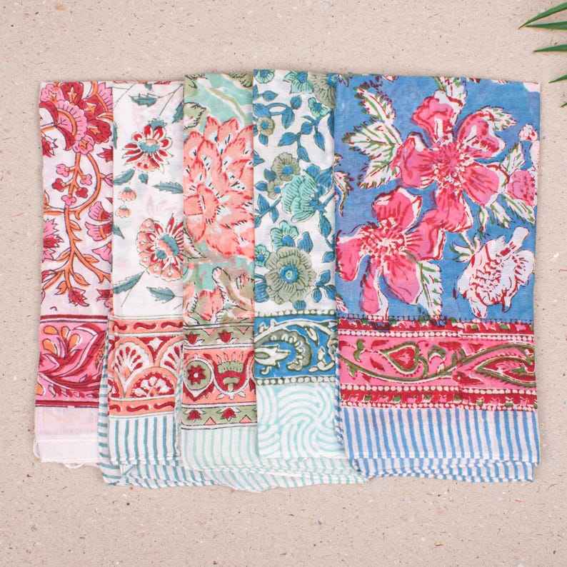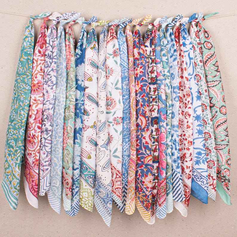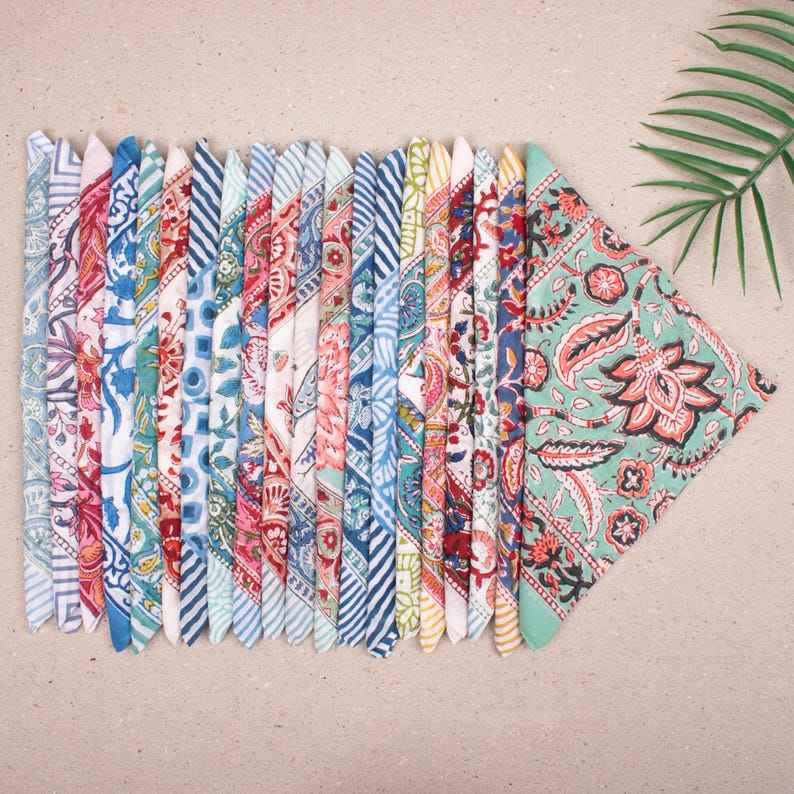 Nom du produit:Bandanas en coton colorés, foulard imprimé à la main au bloc, unisexe, pour l'été