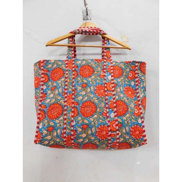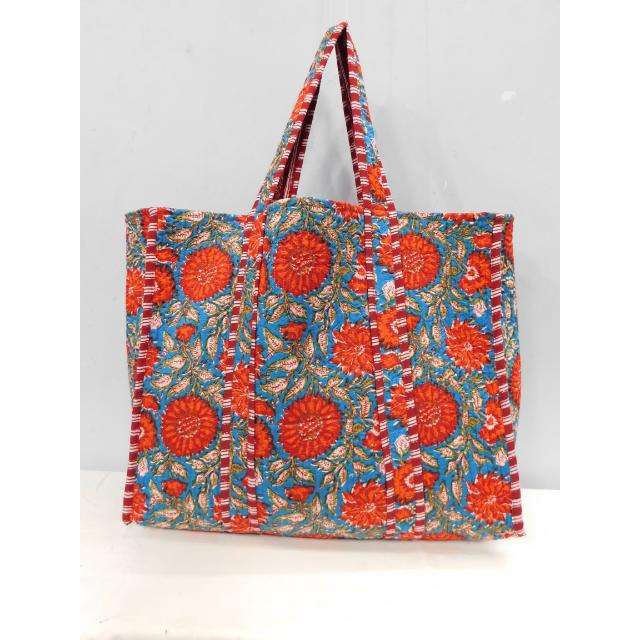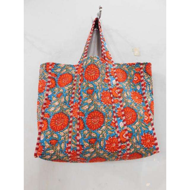 Sac fourre-tout en coton matelassé à imprimé floral bohème, fermeture à glissière faite à la main, sac de plage pour femmes, voyage, printemps, été, automne, hiver, réutilisable