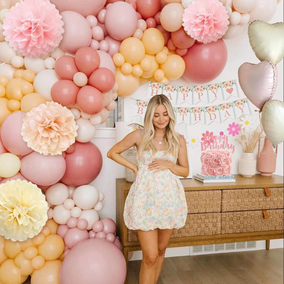 Ensemble de décorations de fête d'anniversaire Boho Daisy pour femmes, bannière Joyeux Anniversaire fleurie, rideau à franges rose pour la fête