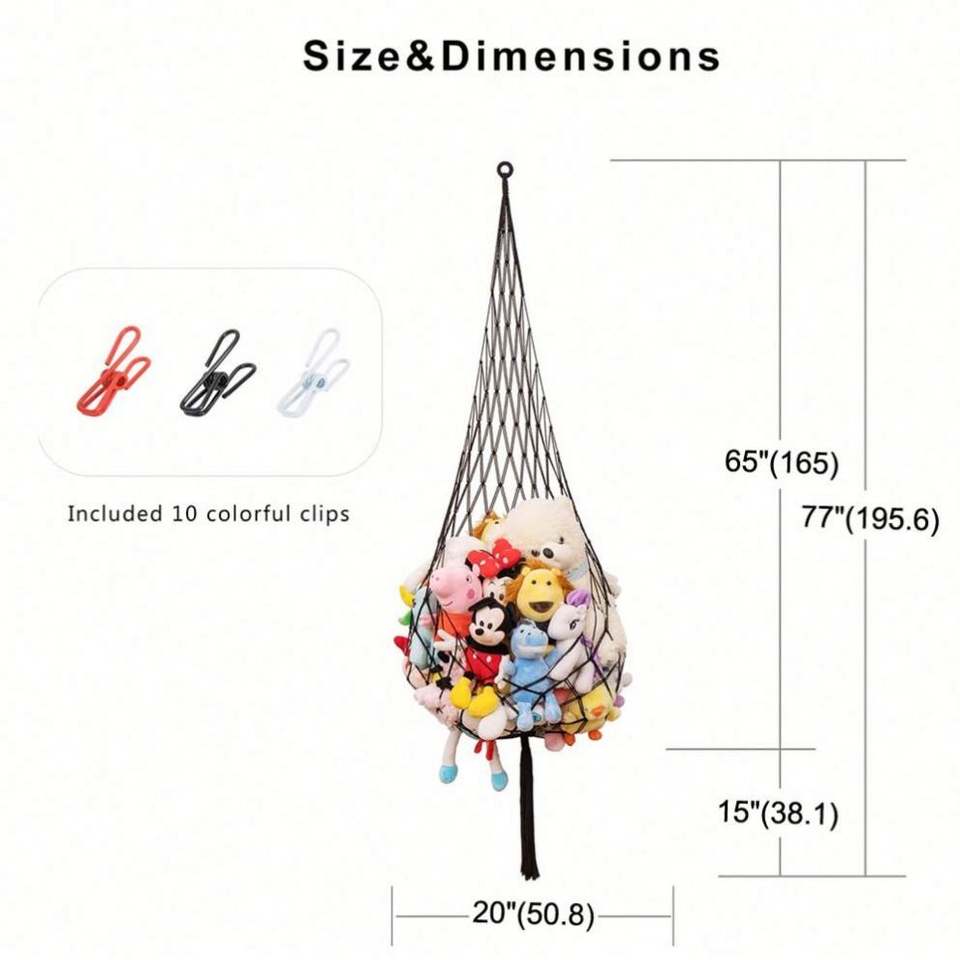 Boho Decor for Nursery Bedroom Kids Room Stuffed Animal Net or Hammock Macrame Plush Toy Display Walls and Ceiling Hanging Net