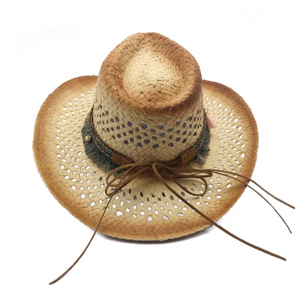 Article:Chapeau western de cowboy de paille colombienne avec des trous Boho