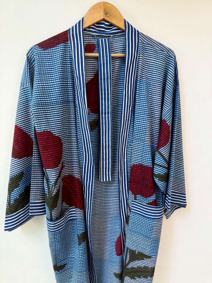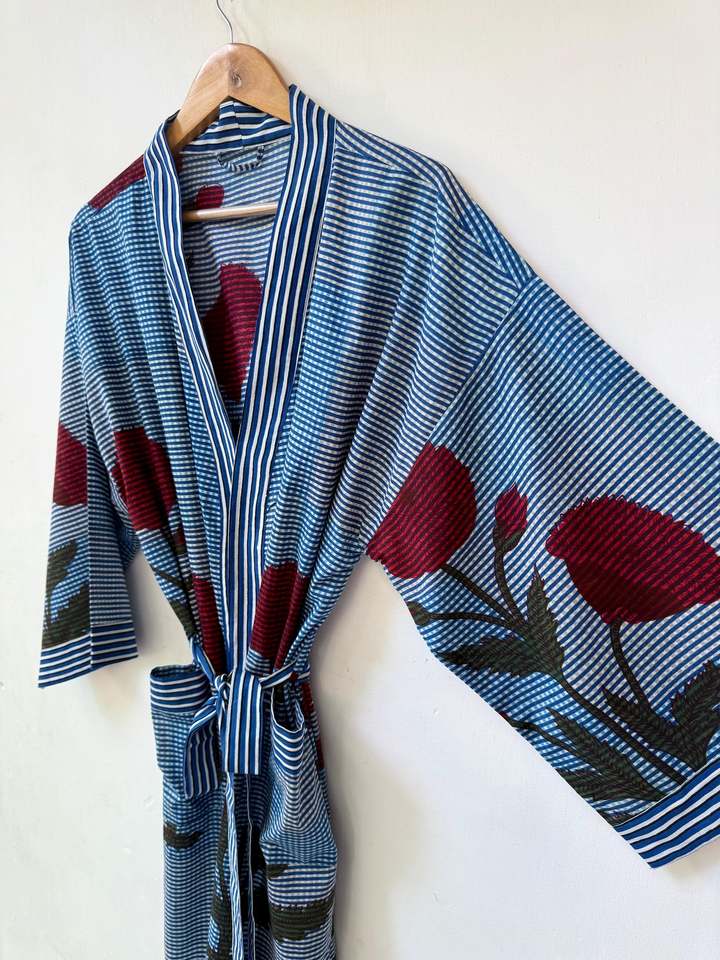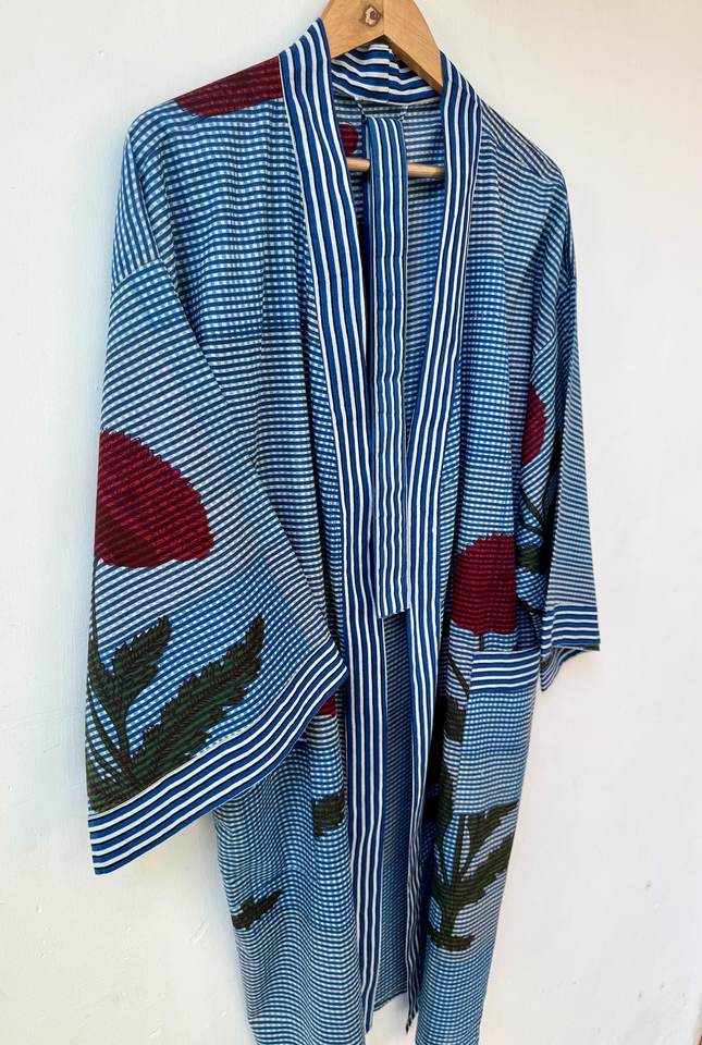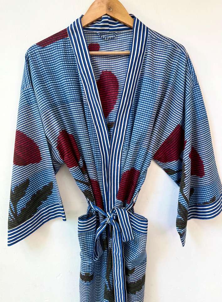 Robe kimono bohème florale en coton à col en V et manches longues, légère et à séchage rapide, pour l'été et le printemps, tenue de détente pleine longueur