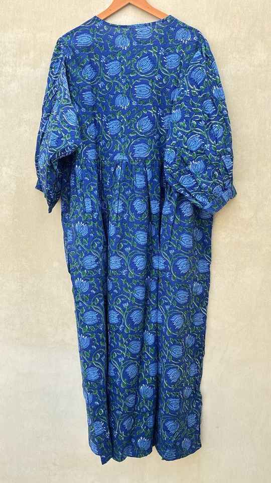 Boho Floral Cotton Midi Dress Handmade Summer Tunic For Women