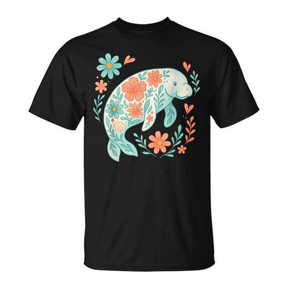 T-shirt Boho Floral Manatee Ocean Summer Beach Lover Sea Animal