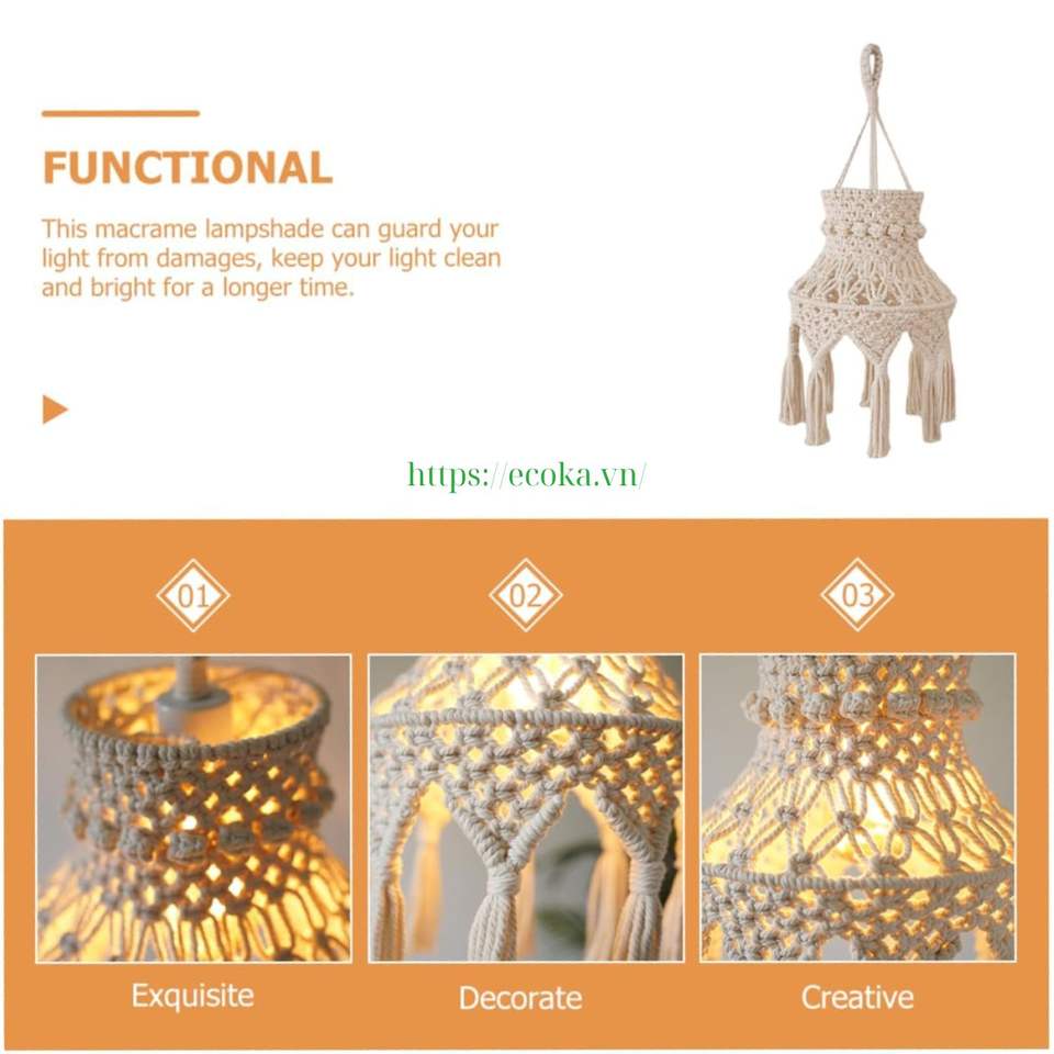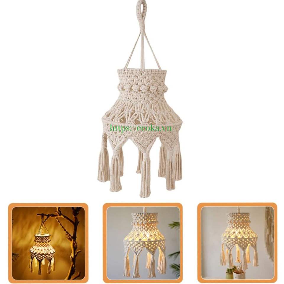 Haute qualité Boho macramé suspendu abat-jour à la main trame 100% coton gland lustre Vietnam tissé respirant personnalisé maison