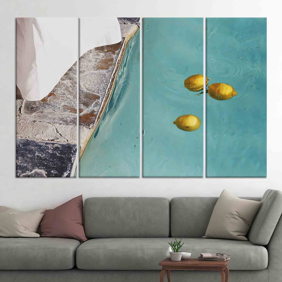 Impression sur toile Boho Lemons Swimming Pool - Décoration murale élégante, lot de 4 toiles