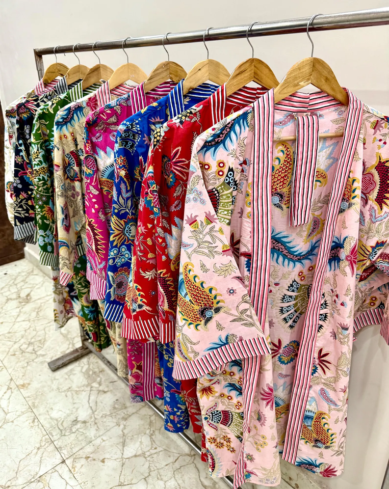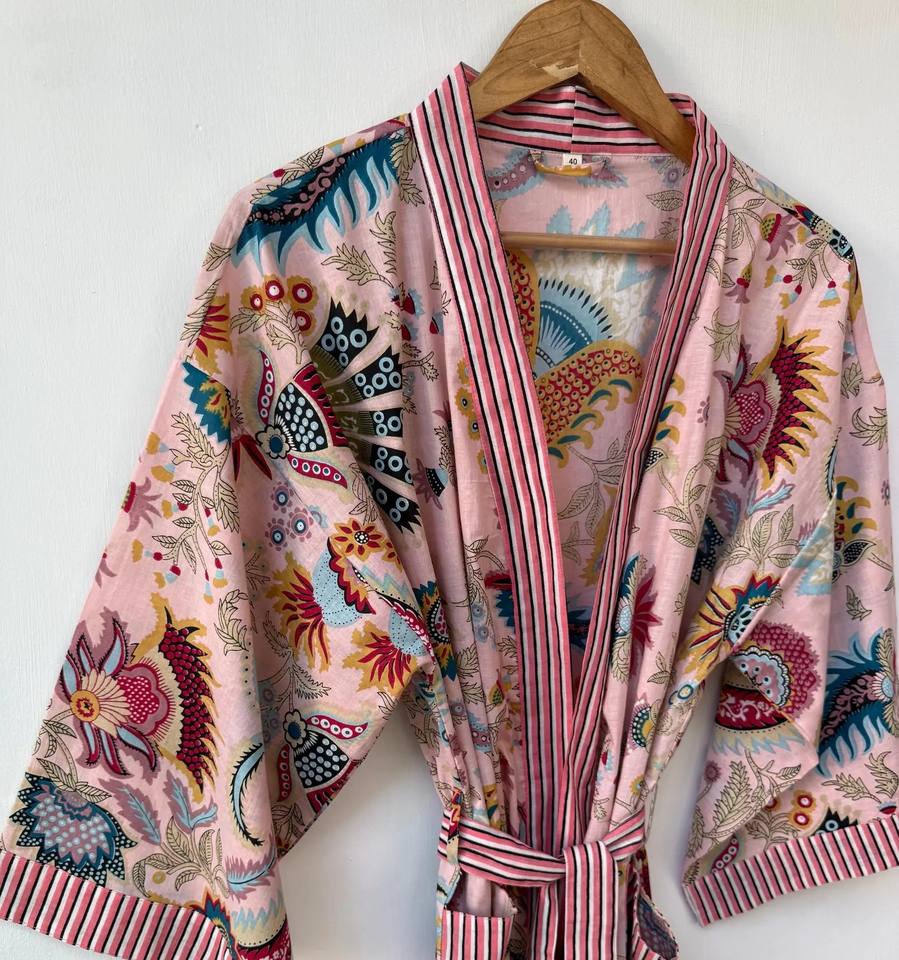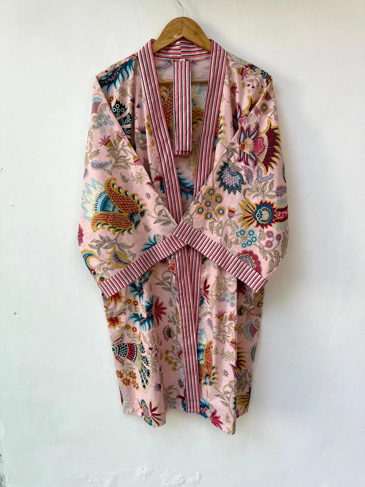 Robe Kimono Bohème pour Femme en Coton Imprimé Lion, Col en V, Imprimée à la Main, Cache-maillot de Plage, Tenue d'Intérieur Élégante, Été Printemps, Séchage Rapide