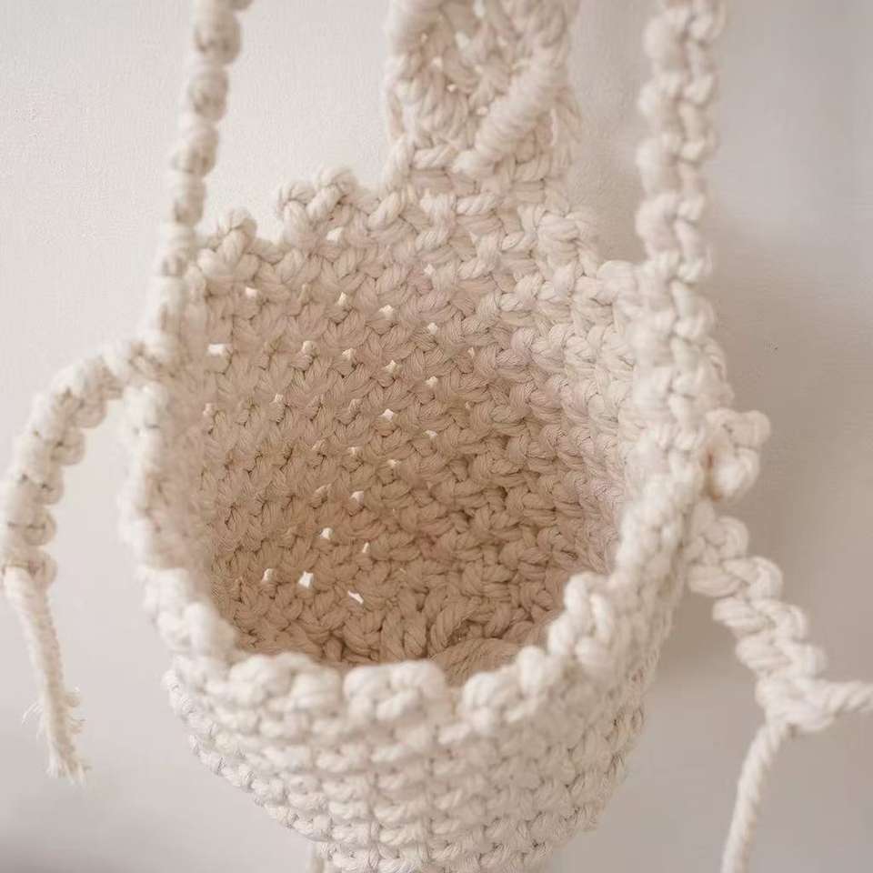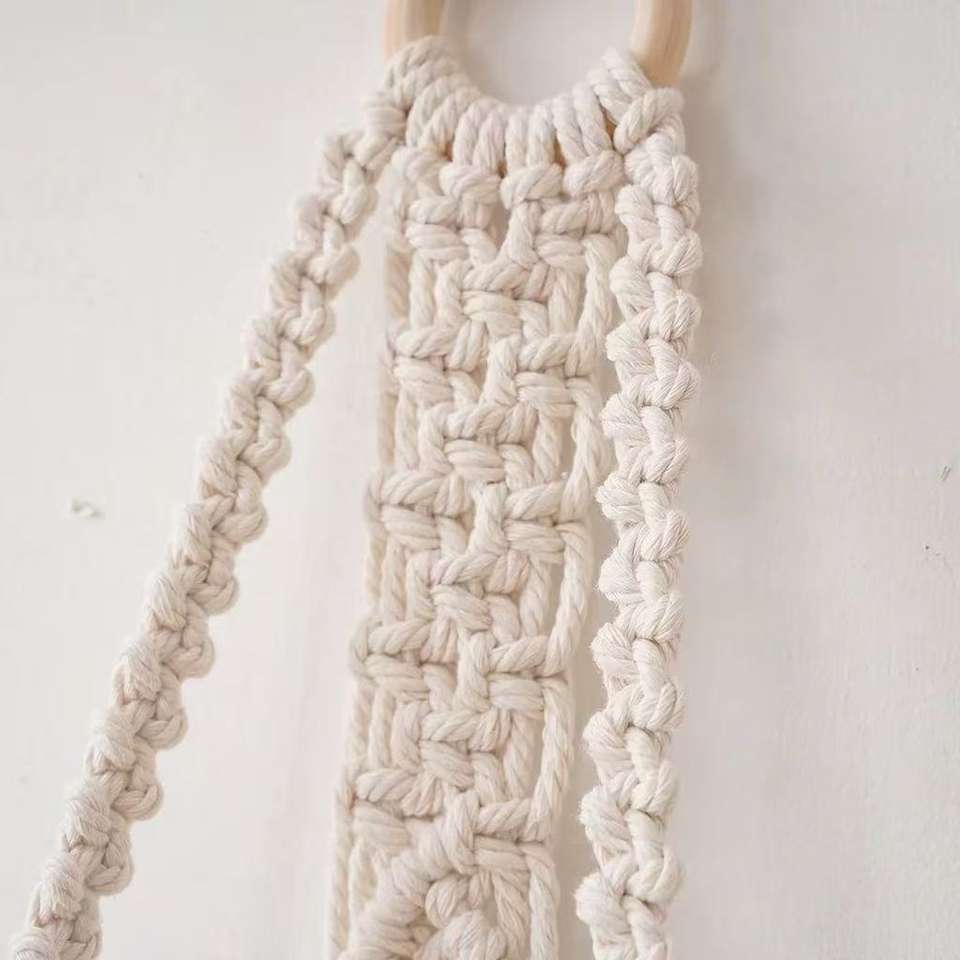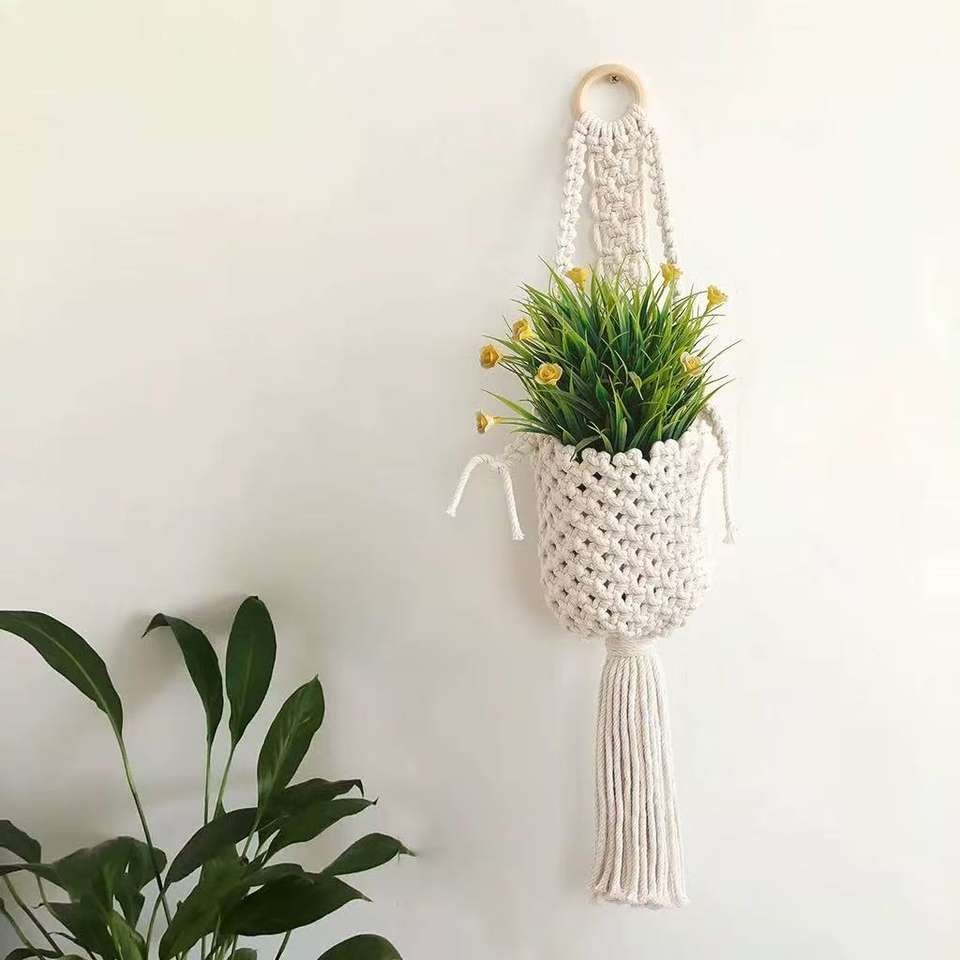 Porte-fleurs suspendu en macramé bohème avec anneau en bois, panier mural en corde de coton fait à la main pour fleurs séchées et artificielles, décoration intérieure