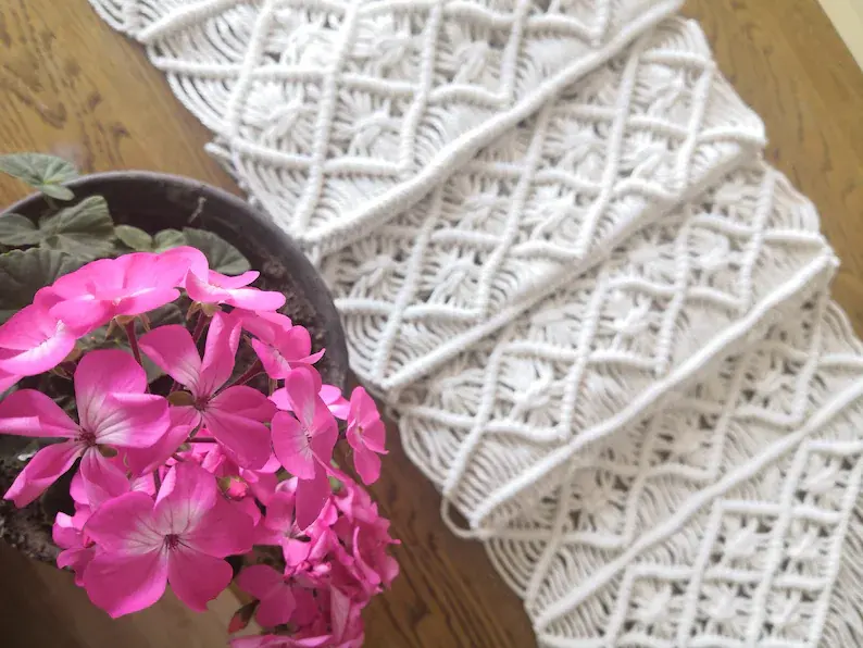 Boho macramé nappe coureur fait à la main coton décoration de la maison pour pendaison de crémaillère idée cadeau