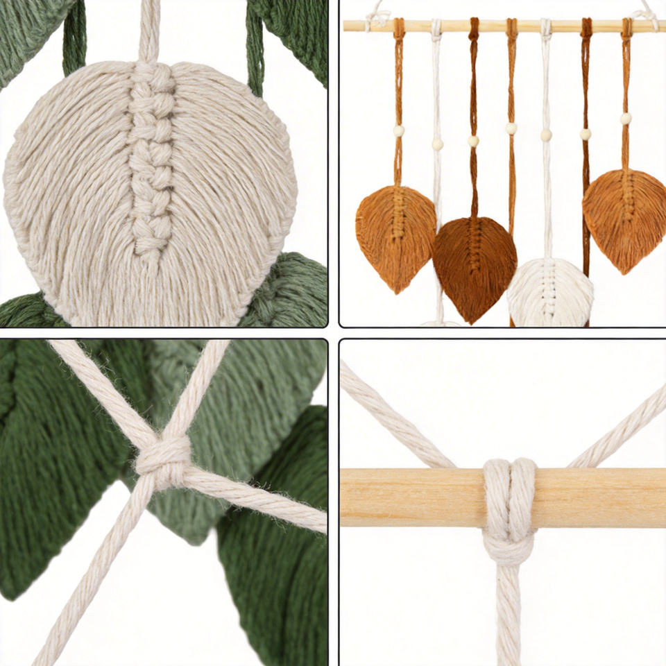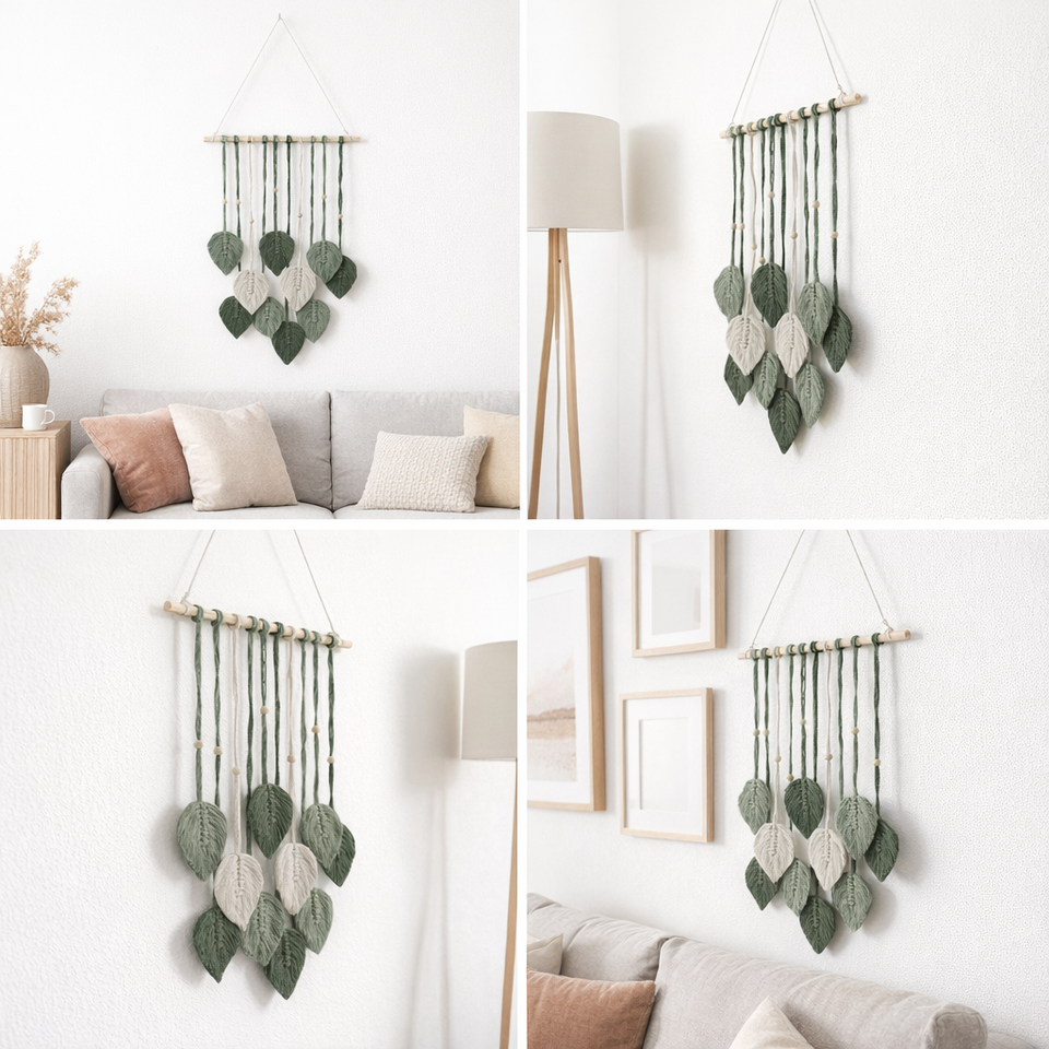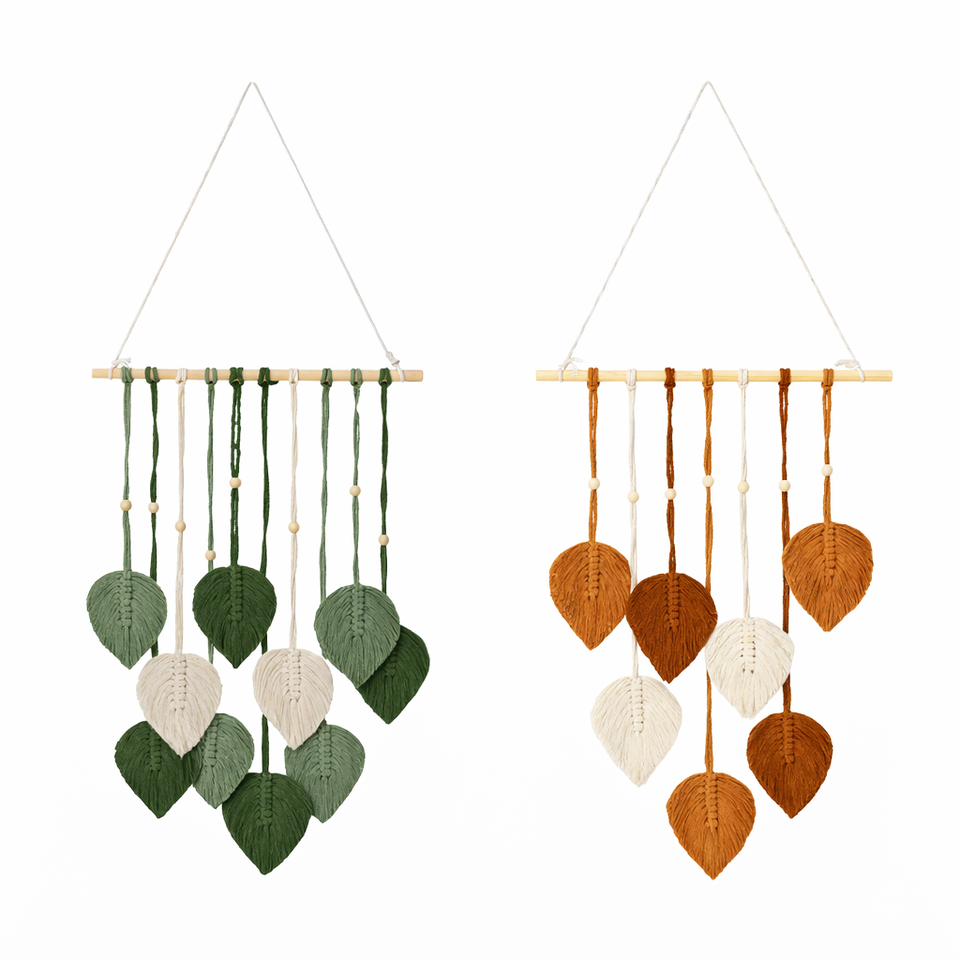Tapisserie murale en macramé bohème faite à la main, motif feuille, décoration d'intérieur bohème pour cadeau de mariage, cadeau de pendaison de crémaillère, chambre à coucher, salon