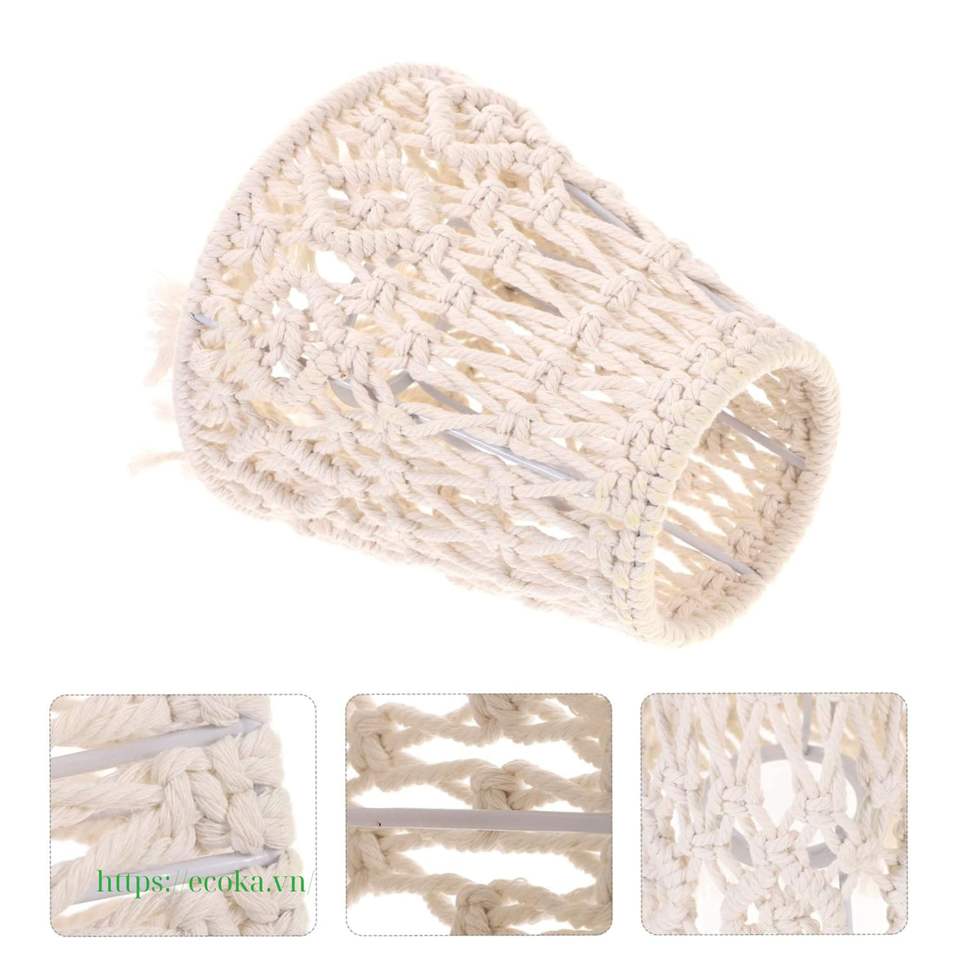 Abat-jour en macramé bohème tissé en coton 100% antistatique, respirant, avec pompon à clipser pour accessoire de luminaire